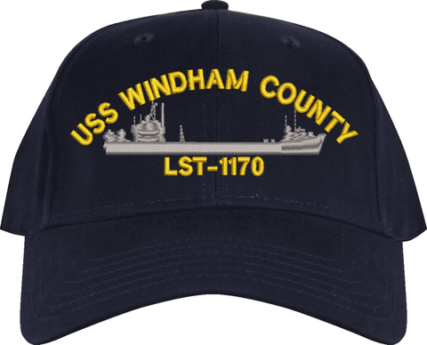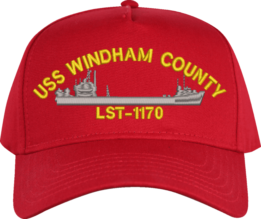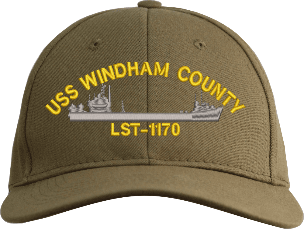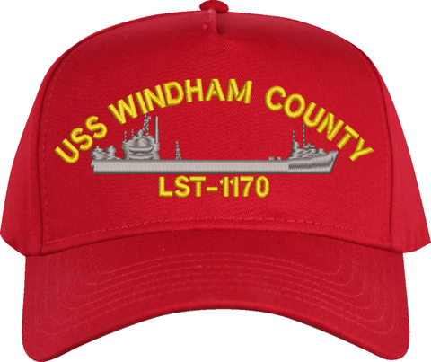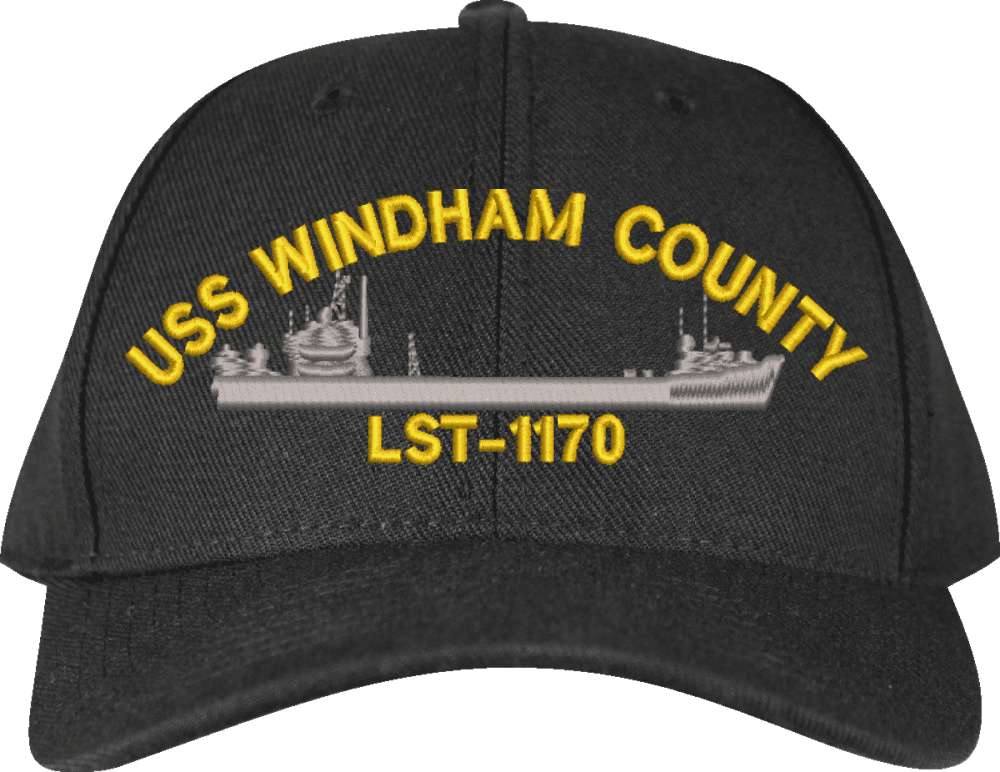 USS Windham County LST-1170 Custom Embroidered CapMilitaryBest is proud to offer this USS Windham County LST-1170 Custom Embroidered Cap. The design of this Cap is crisp, clean, and sure to be loved by people of all ages! This Cap is crafted by our skilled embroidery technicians at our facilities in Scottsboro, AL. As with all MilitaryBest items, your satisfaction is guaranteed!