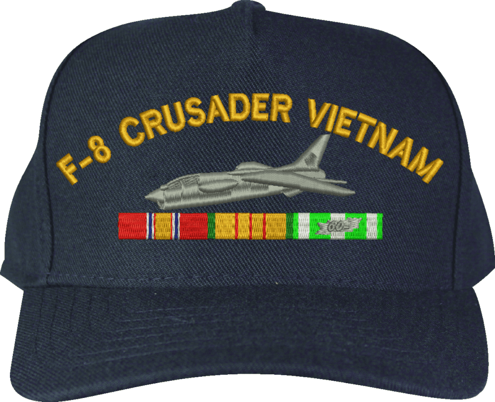 MilitaryBest is proud to offer this F-8 Crusader Vietnam War Custom Embroidered Cap. The design of this Cap is crisp, clean, and sure to be loved by people of all ages! This Cap is crafted by our skilled embroidery technicians at our facilities in Scottsboro, AL. As with all MilitaryBest items, your satisfaction is guaranteed!