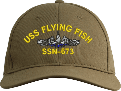 USS Flying Fish SSN-673 with Blue Water Dolphins Custom Embroidered CapMilitaryBest is proud to offer this USS Flying Fish SSN-673 with Dolphins Custom Embroidered Cap. The design of this Cap is crisp, clean, and sure to be loved by people of all ages! This Cap is crafted by our skilled embroidery technicians at our facilities in Scottsboro, AL. As with all MilitaryBest items, your satisfaction is guaranteed!
