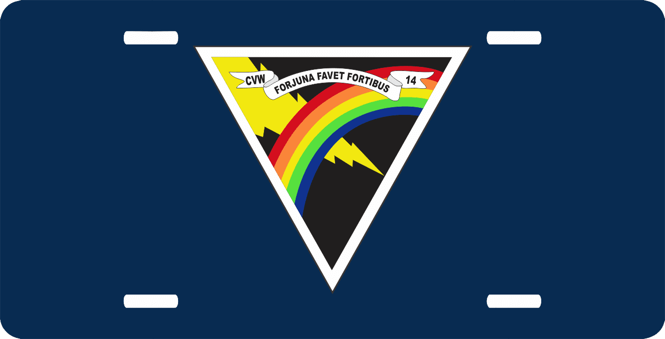 This Carrier Air Wing 14 License Plate is made from heavy gauge aluminum and has a baked enamel finish to last for many years of use. Each plate measures 5 15/16" x 11 15/16". This license plate would make a wonderful addition to your collection or a great gift.