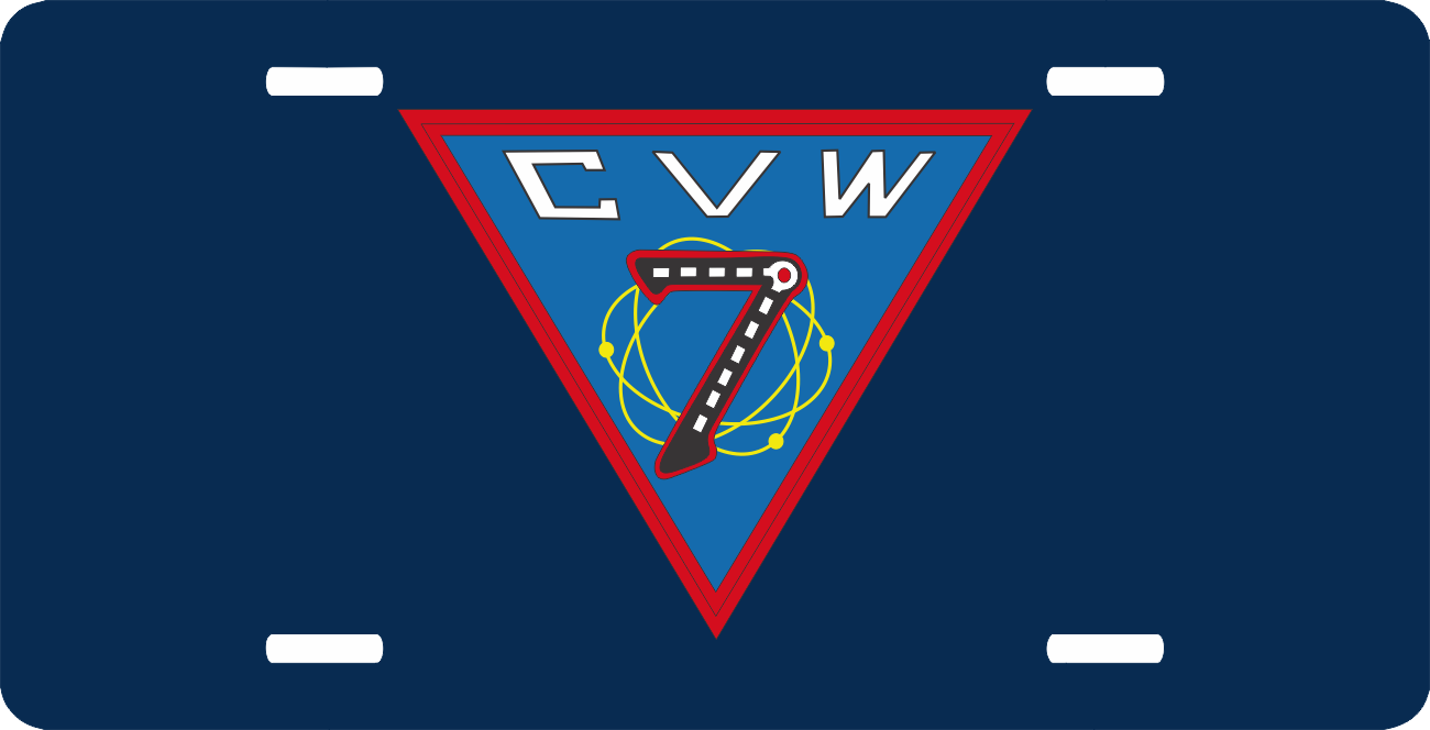 This Carrier Air Wing 7 License Plate is made from heavy gauge aluminum and has a baked enamel finish to last for many years of use. Each plate measures 5 15/16" x 11 15/16". This license plate would make a wonderful addition to your collection or a great gift.