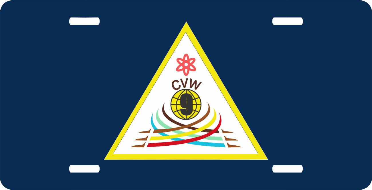 This Carrier Air Wing 9 License Plate is made from heavy gauge aluminum and has a baked enamel finish to last for many years of use. Each plate measures 5 15/16" x 11 15/16". This license plate would make a wonderful addition to your collection or a great gift.