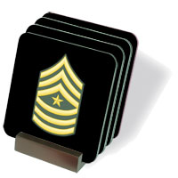 These Army Sergeant Major drink coasters are proudly made in the USA and their quality is guaranteed! Each of our military drink coasters measure 3 ¾”, has a beautiful gloss finish and is manufactured with a soft cork underside to protect your furniture and prevent slipping. This set of coasters is accompanied by a handsome wood coaster holder display rack as shown in our picture above. We are proud to offer these U.S. Army drink coasters and hope that you’ll enjoy them for years to come. Purchase for yourself or as a Military Gift for a friend or loved one.