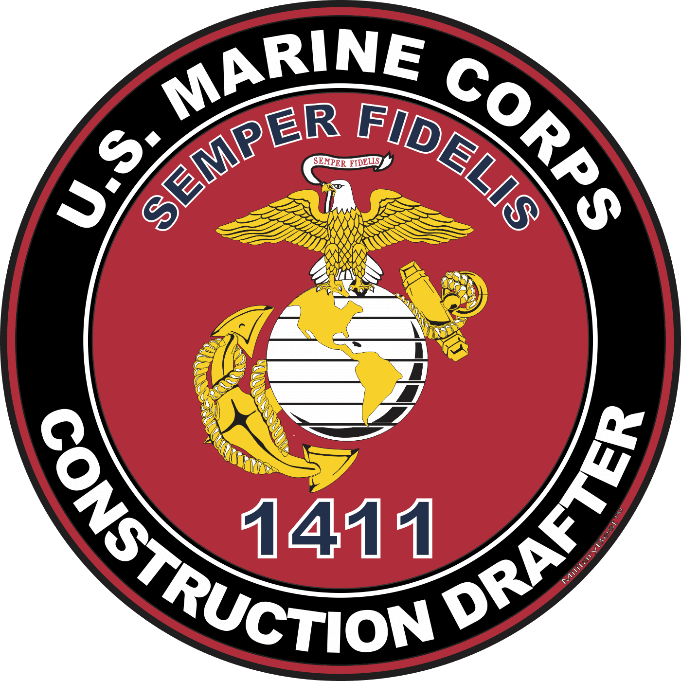 MilitaryBest is proud to offer this U.S.M.C. MOS 1411 Construction Drafter Decal. This U.S. Marine Corps MOS Decal is a great way to show your Marine Pride. All MilitaryBest Marine Corps stickers are printed using high-quality vinyl and U.V. resistant ink. Each is then cured, laminated and die cut for a beautiful crisp, clean and professional look. This U.S.M.C. MOS 1411 Construction Drafter Decal, as well as, any other MilitaryBest.com decal is proudly Made in the USA at our facilities in Scottsboro, AL. Select desired quantity and size from the menu above.Features:
