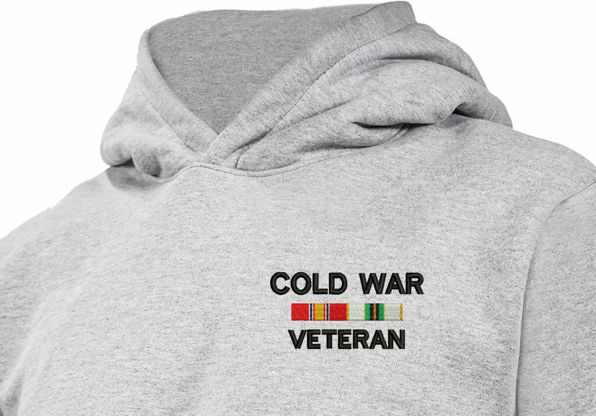 Striving to provide you with the highest quality apparel made in the United States, MilitaryBest is proud to offer this Cold War Veteran with Service Ribbons Heavy Weight Fleece Hoodie. Manufactured by WSI Sportswear in Minnesota and Embroidered by us here at MilitaryBest in Alabama; this fleece hoodie is 100% Made in the USA! We aim to provide you with soft, comfortable, dry-fit, American-made clothing that allows you to be your best.*For washing we recommend machine wash cold with like colors, and line dry.PRODUCT FEATURES