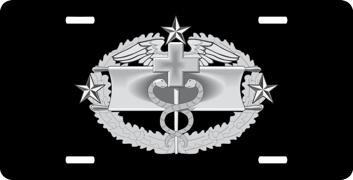 This Army Combat Medical Fourth ( 4th ) Award License Plate is made from heavy gauge aluminum and has a baked enamel finish to last for many years of use. Each plate measures 5 15/16" x 11 15/16". This license plate would make a wonderful addition to your collection or a great gift.