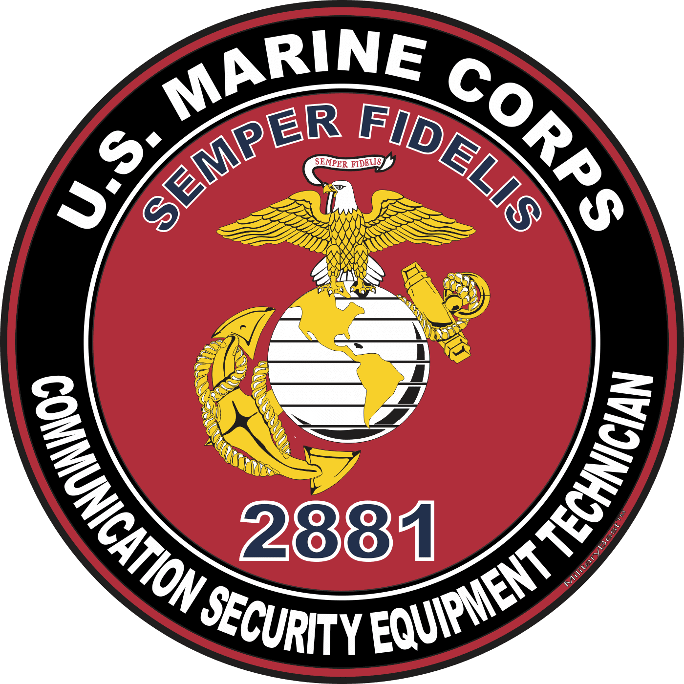 MilitaryBest is proud to offer this U.S.M.C. MOS 2881 Communication Security Equipment Technician Decal. This U.S. Marine Corps MOS Decal is a great way to show your Marine Pride. All MilitaryBest Marine Corps stickers are printed using high-quality vinyl and U.V. resistant ink. Each is then cured, laminated and die cut for a beautiful crisp, clean and professional look. This U.S.M.C. MOS 2881 Communication Security Equipment Technician Decal, as well as, any other MilitaryBest.com decal is proudly Made in the USA at our facilities in Scottsboro, AL. Select desired quantity and size from the menu above.Features: