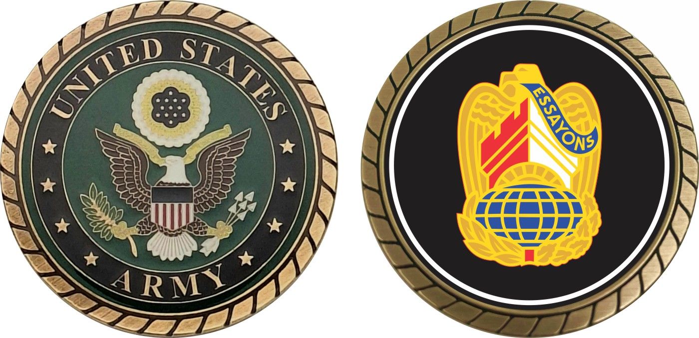This 1 3/4” Corps of Engineers Command Unit Crest - left - Challenge Coin is proudly offered by Militarybest. This Officially Licensed Army coin has beautiful enamel finish on one side and an organized crisp clean design on the opposite side.