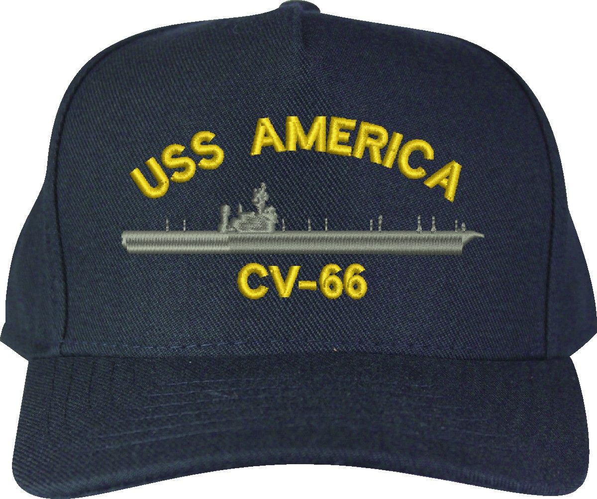 MilitaryBest is proud to offer this USS America CV-66 Made in the USA Ball Cap. This Cap honors the service of our U.S. Navy personel who have served aboard this ship protecting our freedom with pride. Choose from Navy Blue or Black in High or Low Profile. These are perfect for honoring your USS America Navy Veteran. For an additional cost you can also have your Custom Text embroidered on the back of the ball cap. Embroidery on these Made in the USA caps is performed to order at our facilities in Scottsboro, Alabama by Americans with a passion for patriotism!