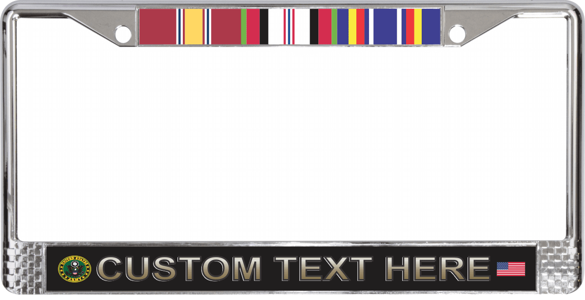 This Custom U.S. Army Afghanistan Ribbon Frame 3-Ribbon Stack License Plate Frame is proudly produced in our facility in Scottsboro, Alabama. Each Chrome Dipped Alloy Frame has Poly Coated Aluminum Inserts which allow our production team to provide you with High Quality Designs. Each design is Sublimation Printed individually, and the end product provides a high gloss appearance of the design. Our Military License Plate Frames' quality are guaranteed. Custom Frames are non-returnable unless there is a defect with the frame or design.A percentage of the sale of each MilitaryBest item is forwarded to the licensing departments of each respective branch of service in support of the MWR (Morale, Welfare, & Recreation) program. These payments are made by either ALL4U LLC or the wholesaler from where the item originated. Our team thanks you for your service and your support of these programs.