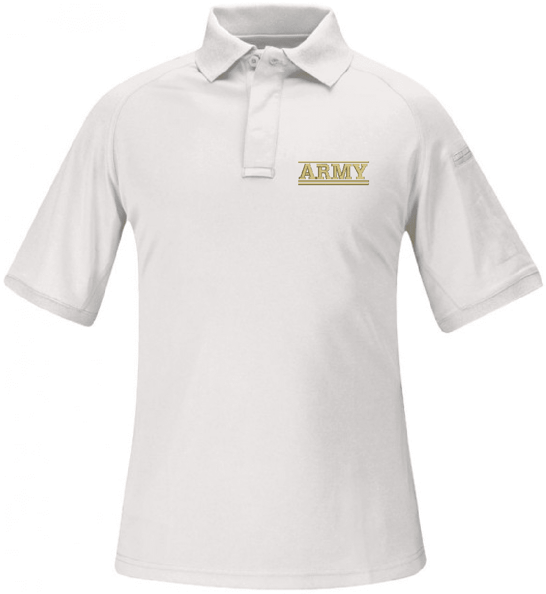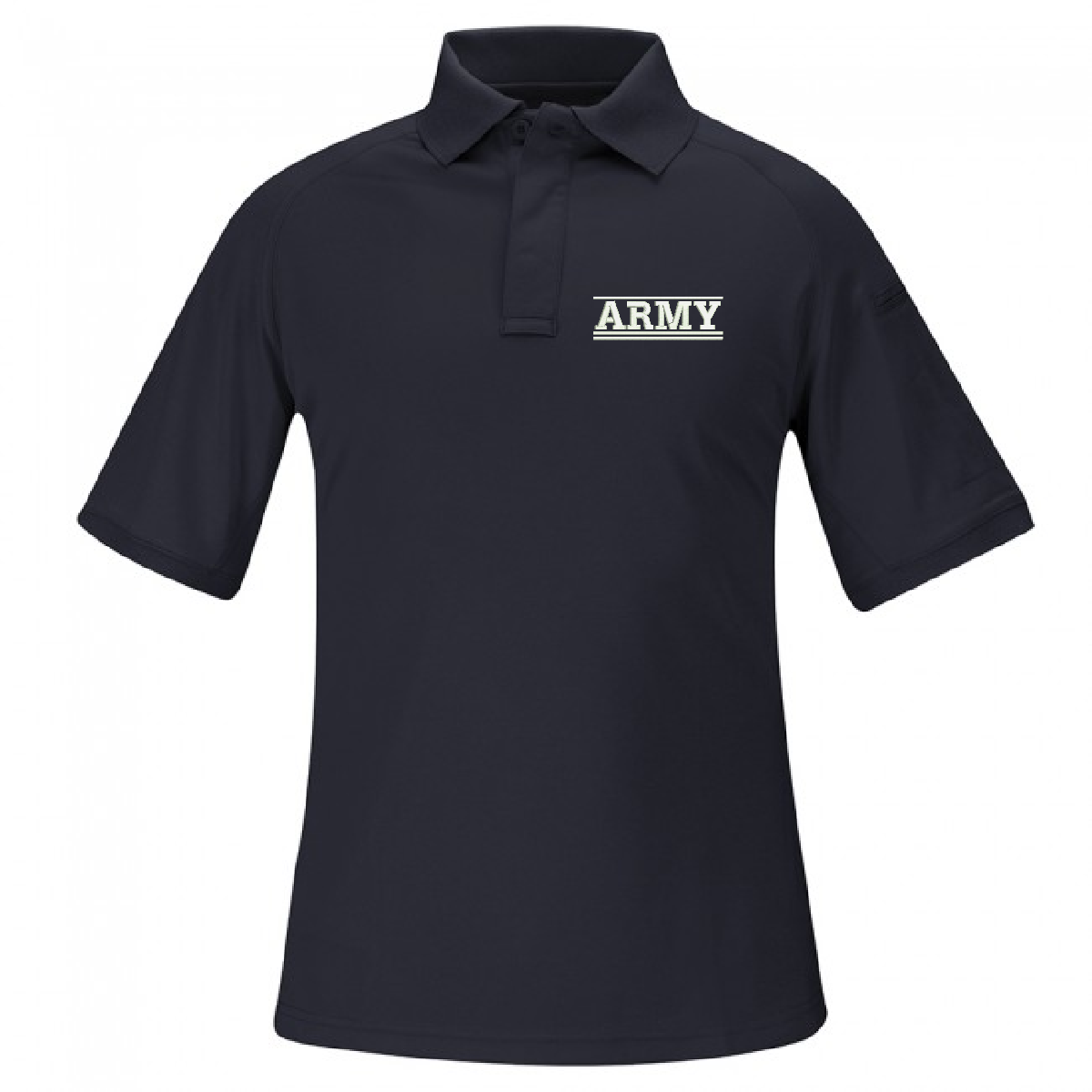 MilitaryBest is proud to offer this Army Script Propper Brand Snag Free Polo Shirt. These polos are Moisture Wicking with a knit so tight that the shirt will not snag. This Polo honors the service of our Army personel who have served in the United States military protecting our freedom with pride. Choose from Black, Navy Blue, and White in Sizes Small - 5XL. These are perfect for honoring your Army Veteran. All embroidery is performed to order at our facilities in Scottsboro, Alabama by Americans with a passion for patriotism!