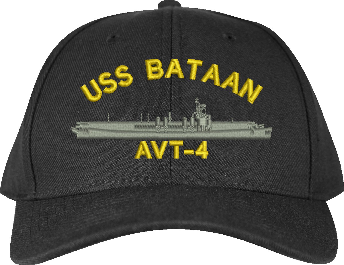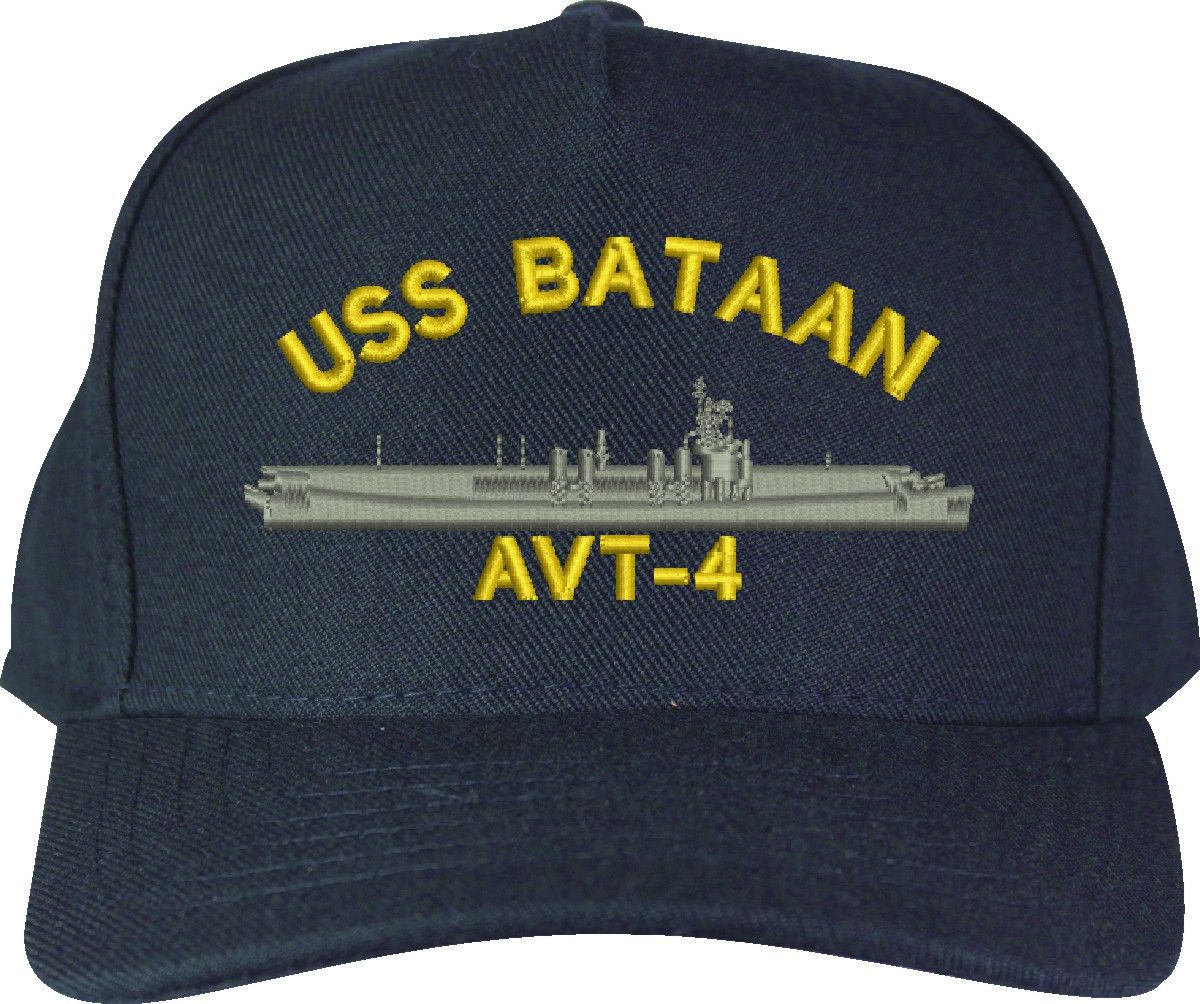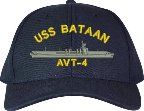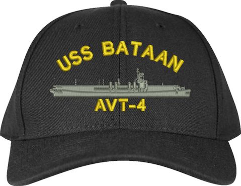 MilitaryBest is proud to offer this USS Bataan AVT-4 Made in the USA Ball Cap. This Cap honors the service of our U.S. Navy personel who have served aboard this ship protecting our freedom with pride. Choose from Navy Blue or Black in High or Low Profile. These are perfect for honoring your USS Bataan Navy Veteran. For an additional cost you can also have your Custom Text embroidered on the back of the ball cap. Embroidery on these Made in the USA caps is performed to order at our facilities in Scottsboro, Alabama by Americans with a passion for patriotism!