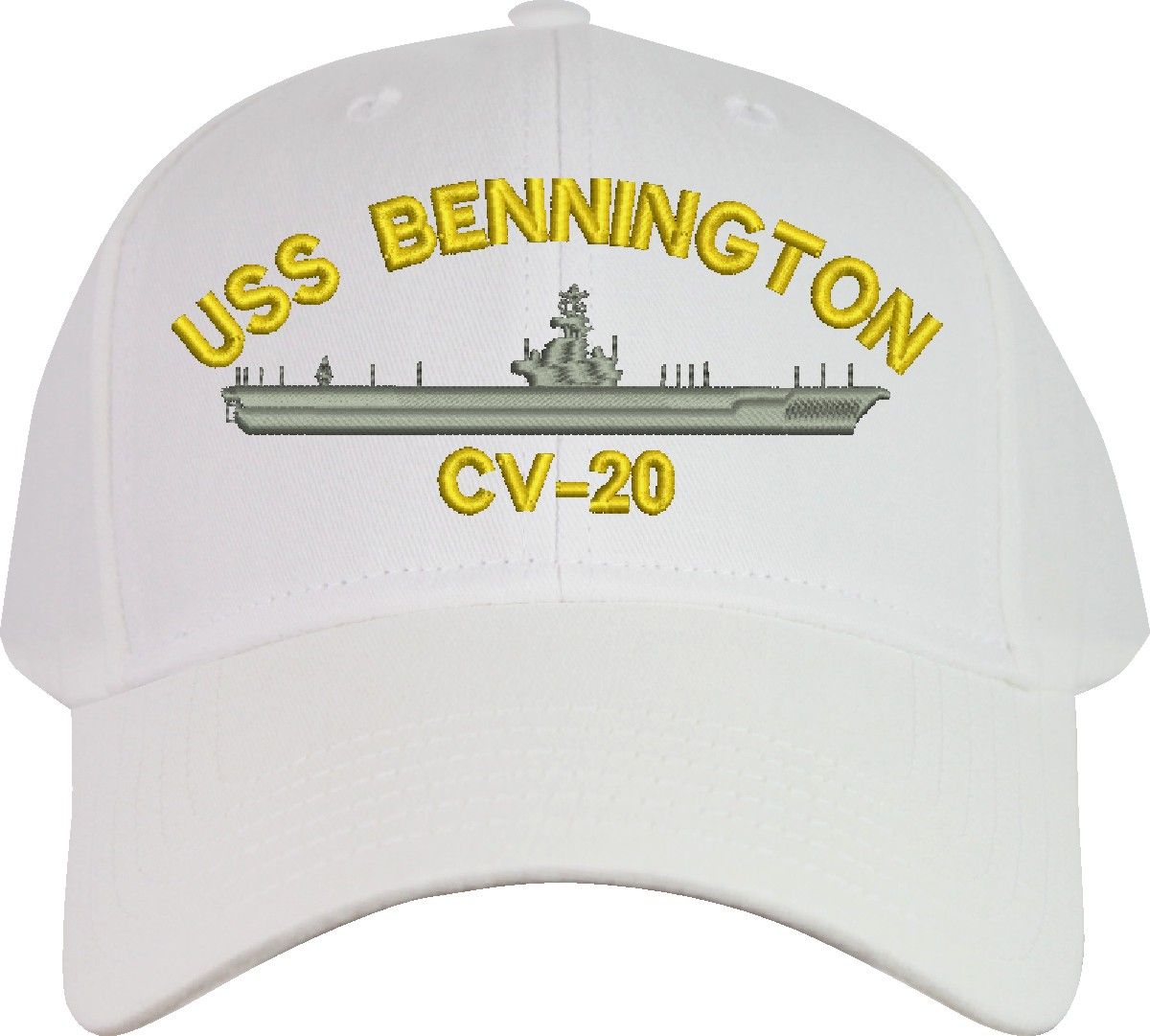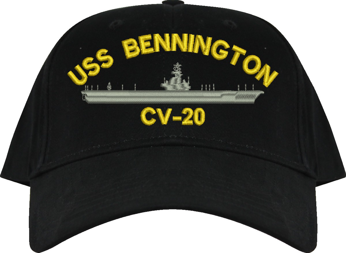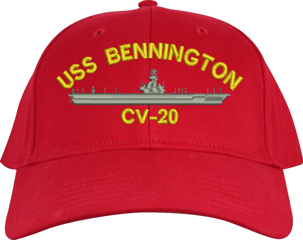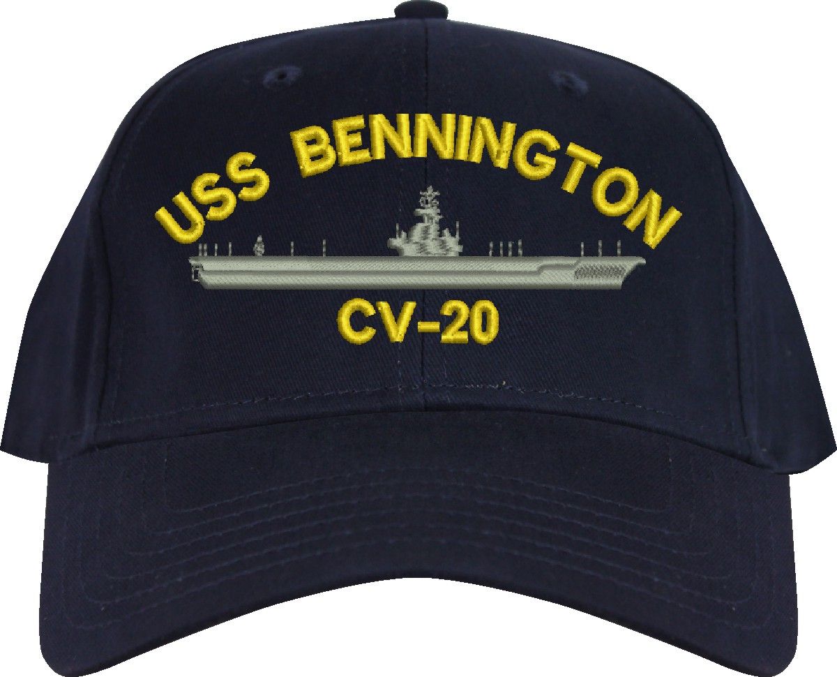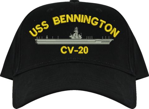 All Text on custom orders will be embroidered in ALL CAPITAL LETTERS.MilitaryBest is proud to offer this USS Bennington CV-20 Imported Cap. This Cap honors the service of our U.S. Navy personel who have served aboard this ship protecting our freedom with pride. Choose from an assortment of colors in High or Low Profile. These are perfect for honoring your USS Bennington Navy Veteran. For an additional cost you can also have your Custom Text embroidered on the back of the ball cap. All embroidery is performed to order at our facilities in Scottsboro, Alabama by Americans with a passion for patriotism!