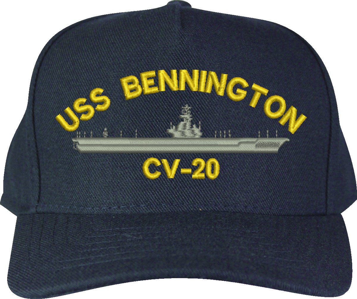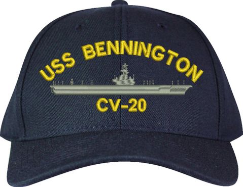 MilitaryBest is proud to offer this USS Bennington CV-20 Made in the USA Ball Cap. This Cap honors the service of our U.S. Navy personel who have served aboard this ship protecting our freedom with pride. Choose from Navy Blue or Black in High or Low Profile. These are perfect for honoring your USS Bennington Navy Veteran. For an additional cost you can also have your Custom Text embroidered on the back of the ball cap. Embroidery on these Made in the USA caps is performed to order at our facilities in Scottsboro, Alabama by Americans with a passion for patriotism!