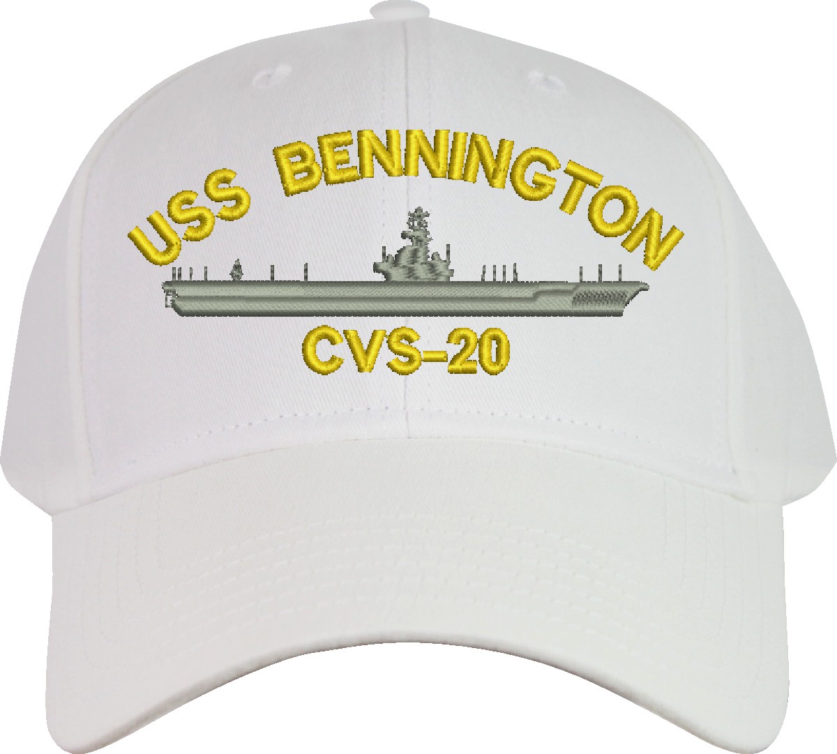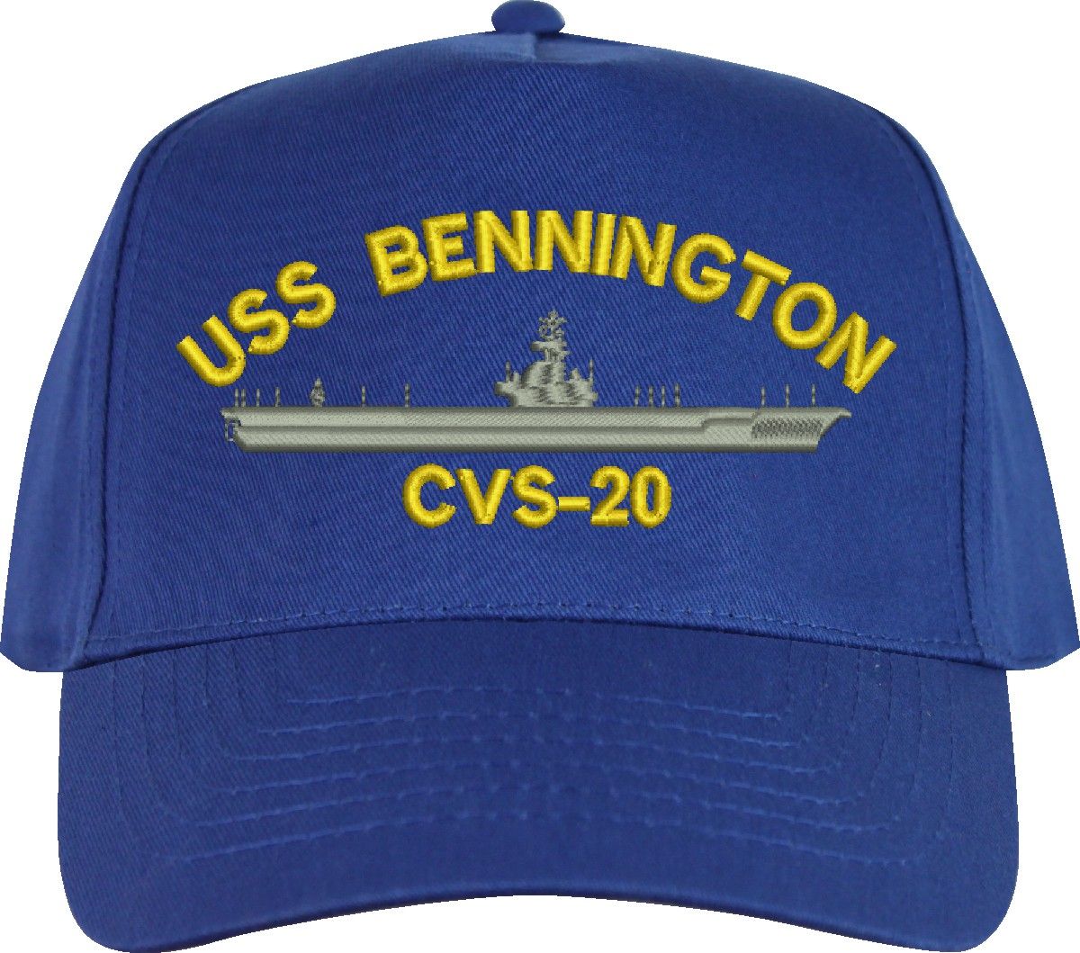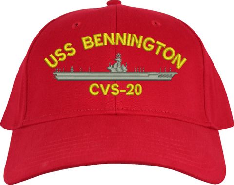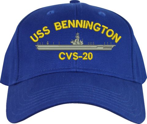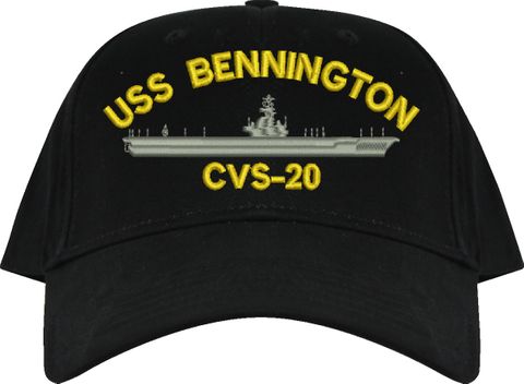 All Text on custom orders will be embroidered in ALL CAPITAL LETTERS.MilitaryBest is proud to offer this USS Bennington CVS-20 Imported Cap. This Cap honors the service of our U.S. Navy personel who have served aboard this ship protecting our freedom with pride. Choose from an assortment of colors in High or Low Profile. These are perfect for honoring your USS Bennington Navy Veteran. For an additional cost you can also have your Custom Text embroidered on the back of the ball cap. All embroidery is performed to order at our facilities in Scottsboro, Alabama by Americans with a passion for patriotism!
