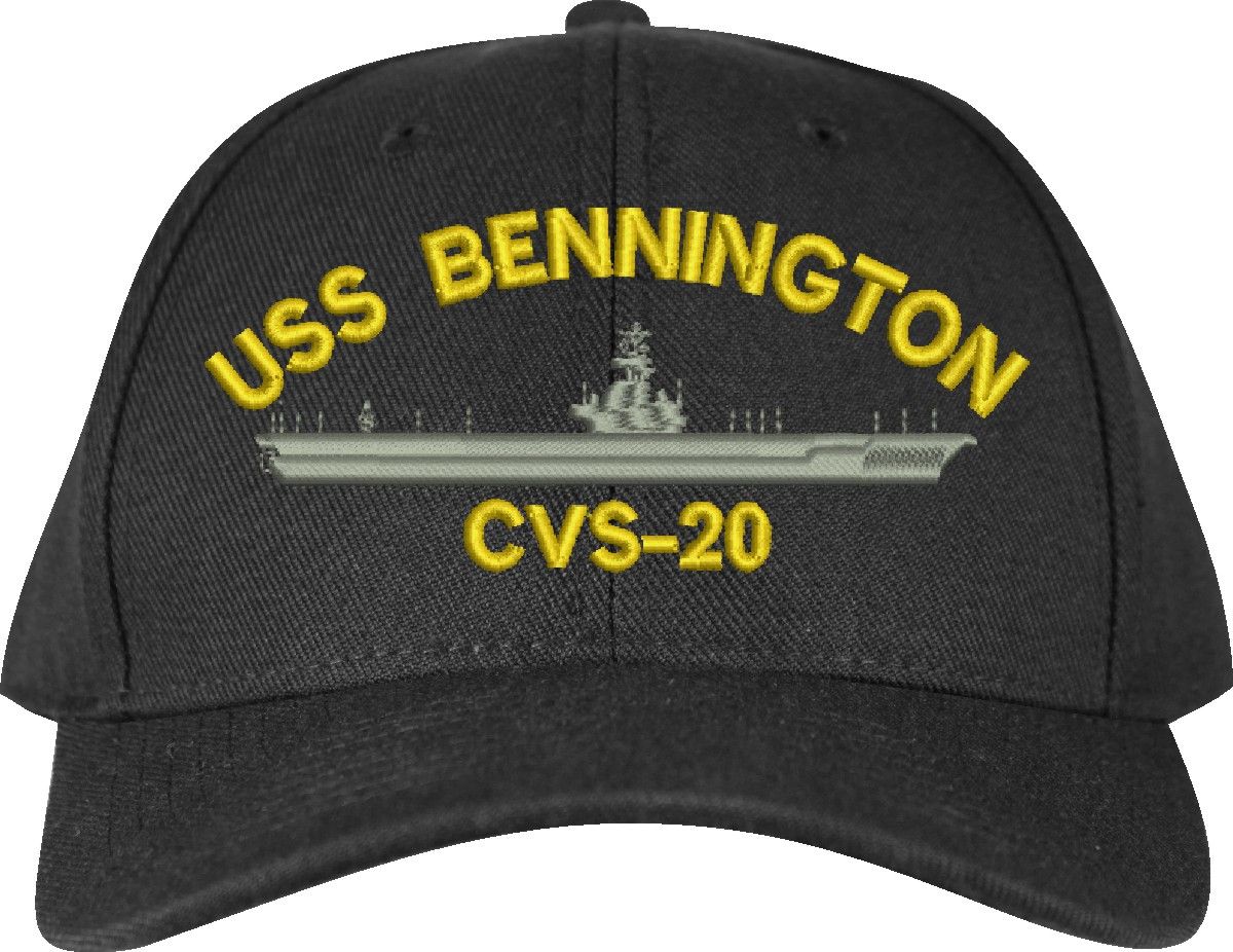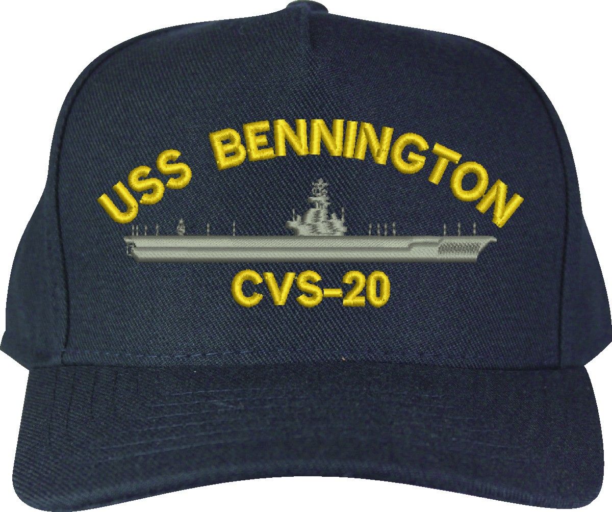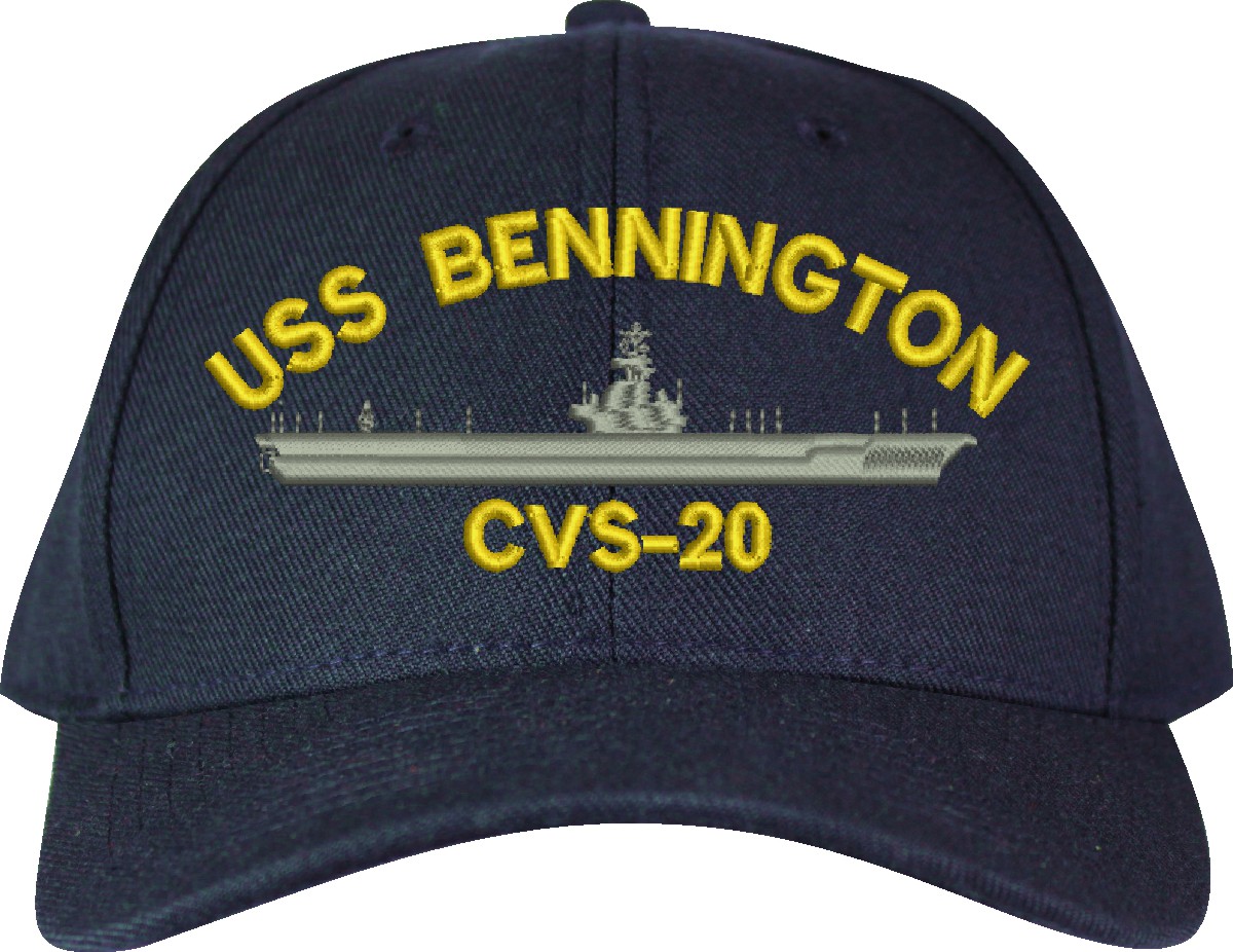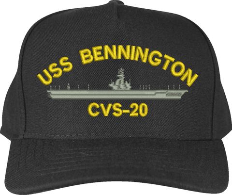 MilitaryBest is proud to offer this USS Bennington CVS-20 Made in the USA Ball Cap. This Cap honors the service of our U.S. Navy personel who have served aboard this ship protecting our freedom with pride. Choose from Navy Blue or Black in High or Low Profile. These are perfect for honoring your USS Bennington Navy Veteran. For an additional cost you can also have your Custom Text embroidered on the back of the ball cap. Embroidery on these Made in the USA caps is performed to order at our facilities in Scottsboro, Alabama by Americans with a passion for patriotism!