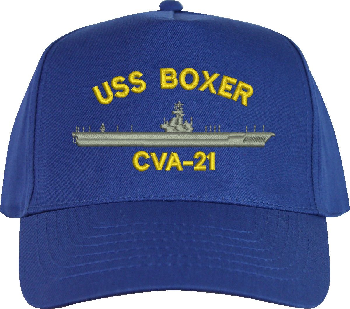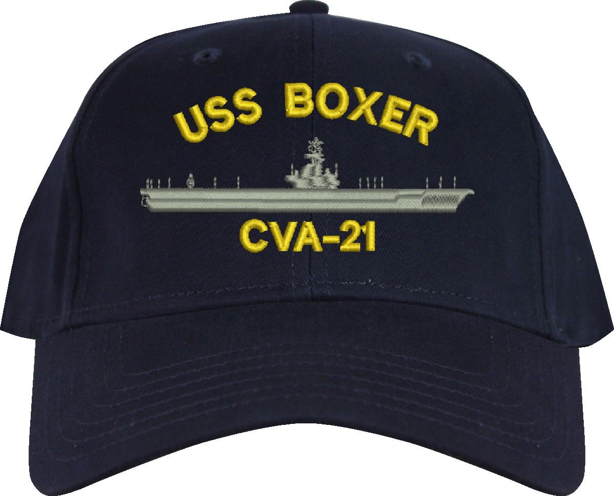 All Text on custom orders will be embroidered in ALL CAPITAL LETTERS.MilitaryBest is proud to offer this USS Boxer CVA-21 Imported Cap. This Cap honors the service of our U.S. Navy personel who have served aboard this ship protecting our freedom with pride. Choose from an assortment of colors in High or Low Profile. These are perfect for honoring your USS Boxer Navy Veteran. For an additional cost you can also have your Custom Text embroidered on the back of the ball cap. All embroidery is performed to order at our facilities in Scottsboro, Alabama by Americans with a passion for patriotism!