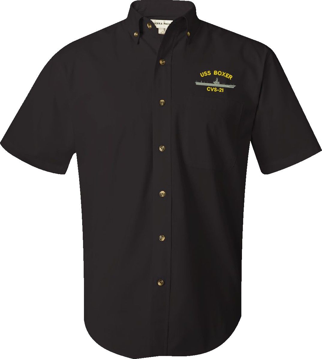 MilitaryBest is proud to offer this USS Boxer CVS-21 Featherlite Button Down Shirt. This Short Sleeve Dress shirt honors the service of our U.S. Navy personel who have served aboard this ship protecting our freedom with pride. Choose from an assortment of colors in sizes Small through 3XL. These are perfect for honoring your USS Boxer Navy Veteran. For an additional cost you can also have your Rank & Rate embroidered on the left sleeve of the shirt. All embroidery is performed to order at our facilities in Scottsboro, Alabama by Americans with a passion for patriotism!
