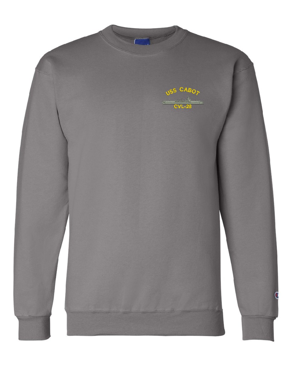 MilitaryBest is proud to offer this USS Cabot CVL-28 Sweatshirt. This Sweatshirt honors the service of our U.S. Navy personel who have served aboard this ship protecting our freedom with pride. Choose from an assortment of colors in sizes Small through 3XL. These are perfect for honoring your USS Cabot Navy Veteran. For an additional cost you can also have your Rank & Rate embroidered on the left sleeve of the Sweatshirt. All embroidery is performed to order at our facilities in Scottsboro, Alabama by Americans with a passion for patriotism!