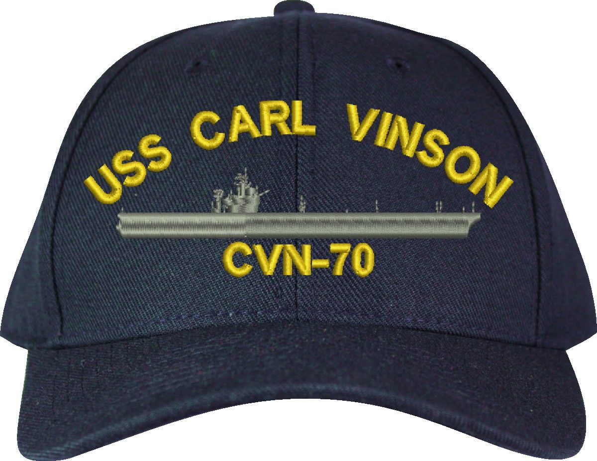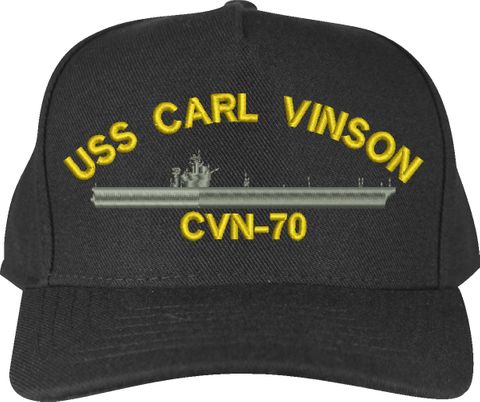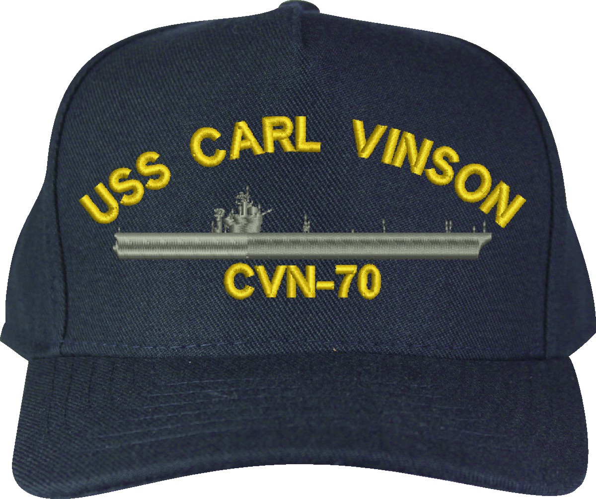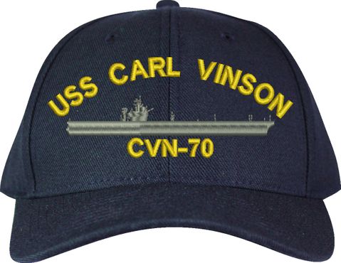 MilitaryBest is proud to offer this USS Carl Vinson CVN-70 Made in the USA Ball Cap. This Cap honors the service of our U.S. Navy personel who have served aboard this ship protecting our freedom with pride. Choose from Navy Blue or Black in High or Low Profile. These are perfect for honoring your USS Carl Vinson Navy Veteran. For an additional cost you can also have your Custom Text embroidered on the back of the ball cap. Embroidery on these Made in the USA caps is performed to order at our facilities in Scottsboro, Alabama by Americans with a passion for patriotism!
