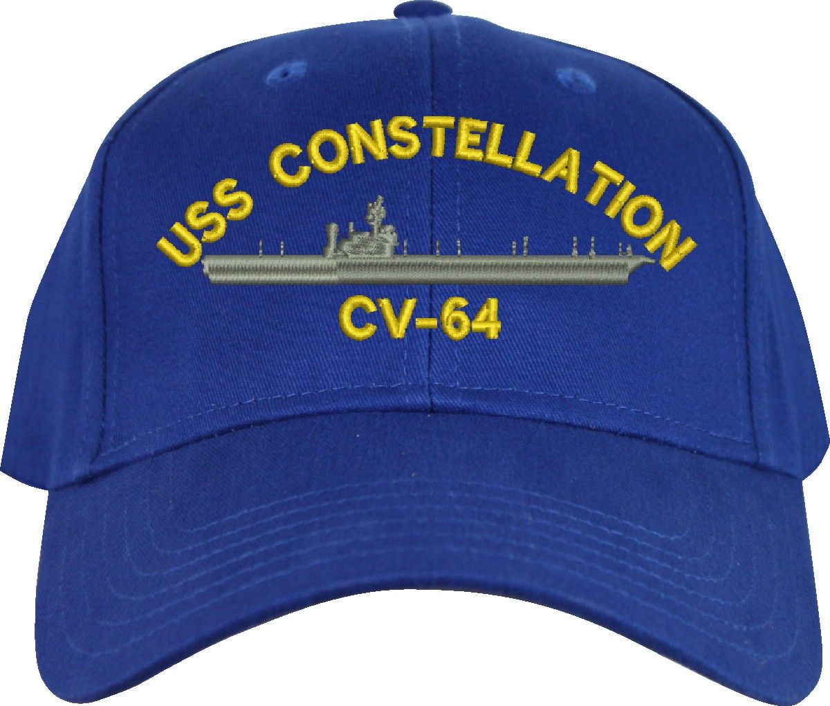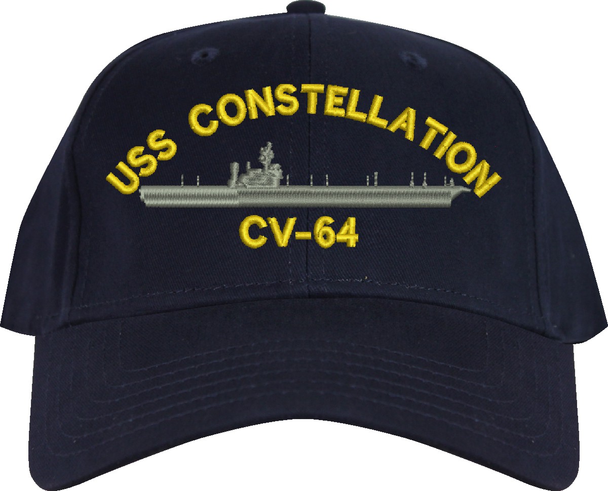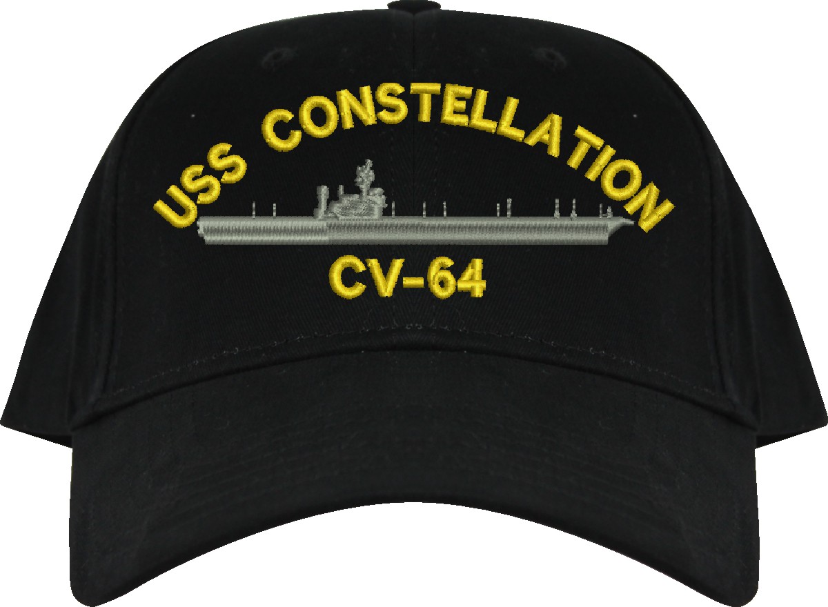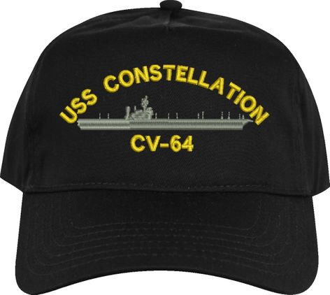 All Text on custom orders will be embroidered in ALL CAPITAL LETTERS.MilitaryBest is proud to offer this USS Constellation CV-64 Imported Cap. This Cap honors the service of our U.S. Navy personel who have served aboard this ship protecting our freedom with pride. Choose from an assortment of colors in High or Low Profile. These are perfect for honoring your USS Constellation Navy Veteran. For an additional cost you can also have your Custom Text embroidered on the back of the ball cap. All embroidery is performed to order at our facilities in Scottsboro, Alabama by Americans with a passion for patriotism!