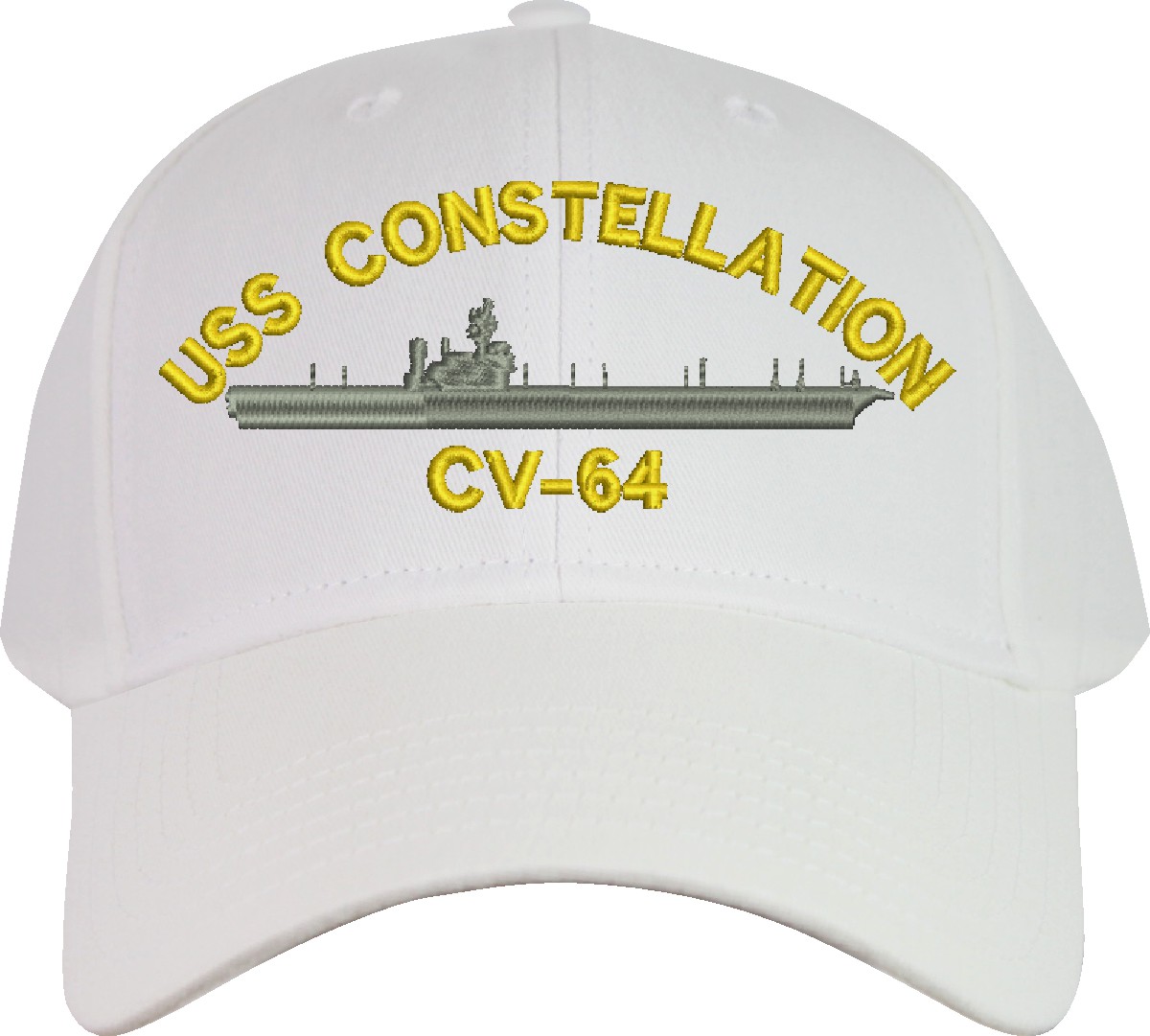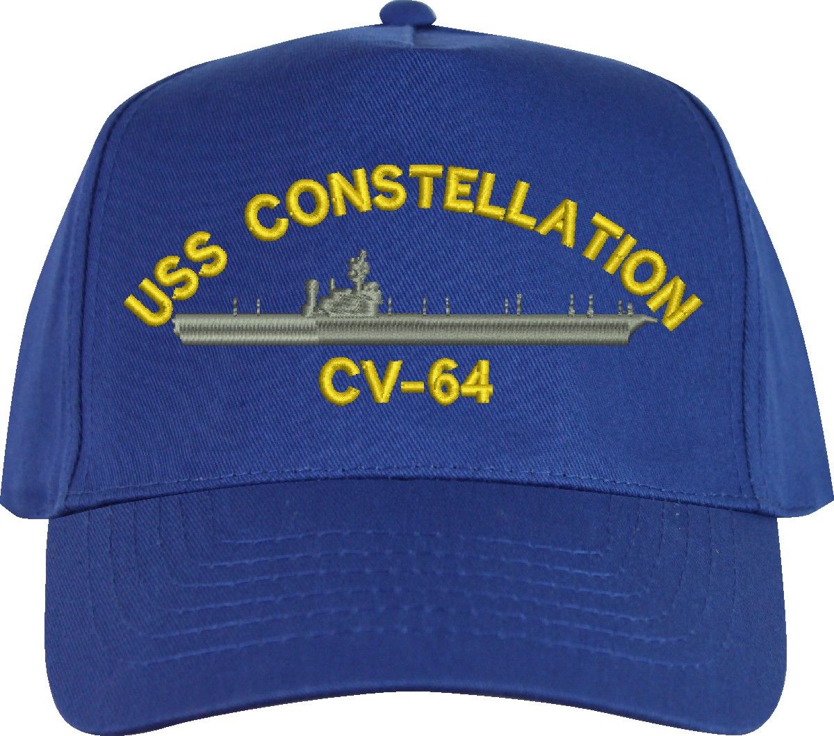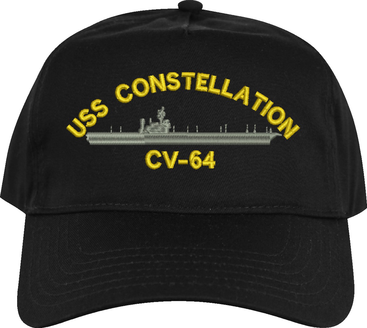 All Text on custom orders will be embroidered in ALL CAPITAL LETTERS.MilitaryBest is proud to offer this USS Constellation CV-64 Imported Cap. This Cap honors the service of our U.S. Navy personel who have served aboard this ship protecting our freedom with pride. Choose from an assortment of colors in High or Low Profile. These are perfect for honoring your USS Constellation Navy Veteran. For an additional cost you can also have your Custom Text embroidered on the back of the ball cap. All embroidery is performed to order at our facilities in Scottsboro, Alabama by Americans with a passion for patriotism!