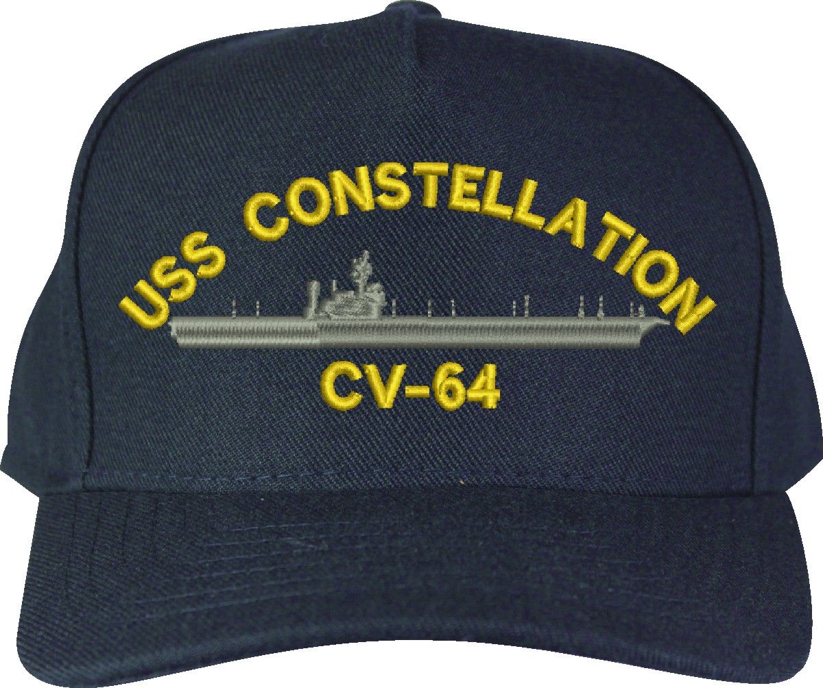 MilitaryBest is proud to offer this USS Constellation CV-64 Made in the USA Ball Cap. This Cap honors the service of our U.S. Navy personel who have served aboard this ship protecting our freedom with pride. Choose from Navy Blue or Black in High or Low Profile. These are perfect for honoring your USS Constellation Navy Veteran. For an additional cost you can also have your Custom Text embroidered on the back of the ball cap. Embroidery on these Made in the USA caps is performed to order at our facilities in Scottsboro, Alabama by Americans with a passion for patriotism!