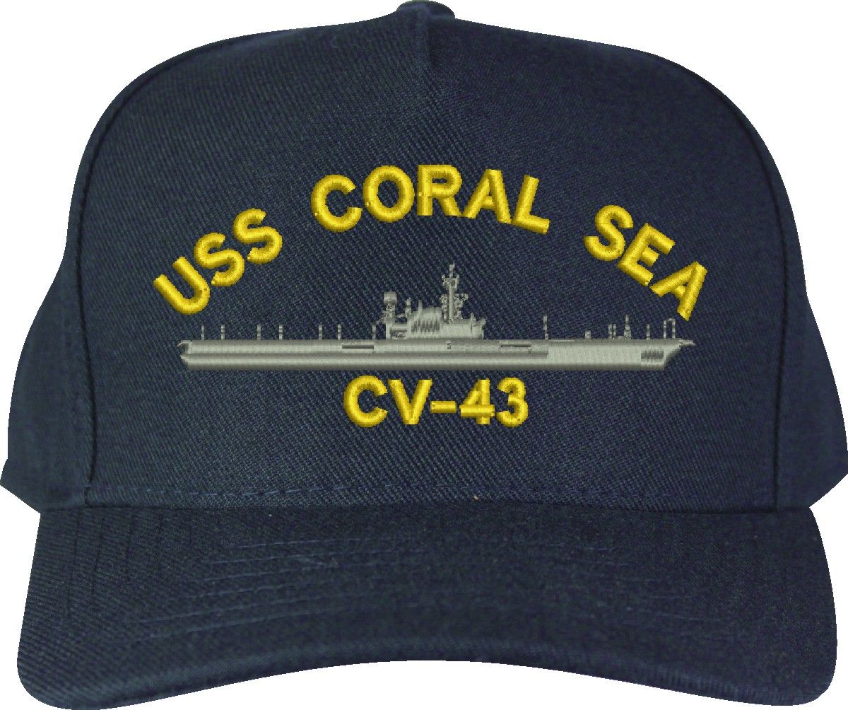 MilitaryBest is proud to offer this USS Coral Sea CV-43 Made in the USA Ball Cap. This Cap honors the service of our U.S. Navy personel who have served aboard this ship protecting our freedom with pride. Choose from Navy Blue or Black in High or Low Profile. These are perfect for honoring your USS Coral Sea Navy Veteran. For an additional cost you can also have your Custom Text embroidered on the back of the ball cap. Embroidery on these Made in the USA caps is performed to order at our facilities in Scottsboro, Alabama by Americans with a passion for patriotism!