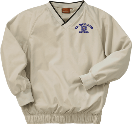 All Text on custom orders will be embroidered in ALL CAPITAL LETTERS.Each of our Coast GuardCustom Harriton Windshirts is embroidered at our facilities in Scottsboro, AL. Choose from a variety of U.S. Coast Guardinsignia with custom text above and below. They are made of 100% Polyest Microfiber with a mesh-lined body and nylon lined sleeves. These "windbreakers" also come with pockets and are both wind and water resistant.