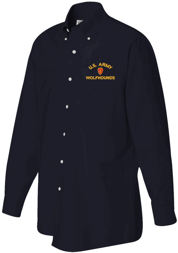 MilitaryBest.com is proud to offer this custom embroidered long sleeve button down Oxford for those who have served and currently serve in the United States Army. Each of these Van Heusen Oxford Shirts has the following features: