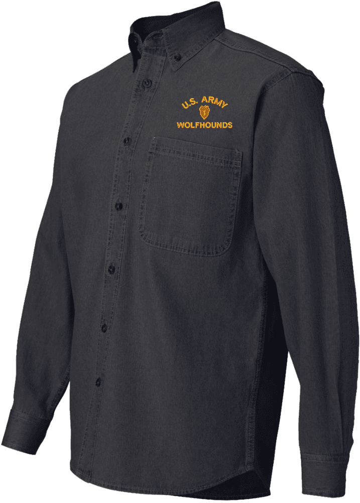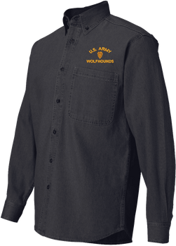 We are proud to offer these custom embroidered U.S. Army Denim Long Sleeve Shirts and each is directly embroidered in the USA! Select your desired color, insignia and text on our order form above.