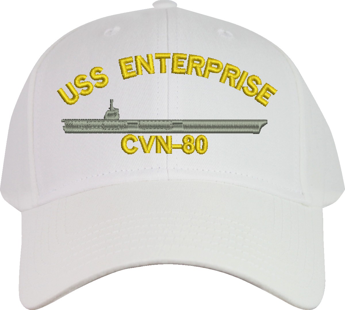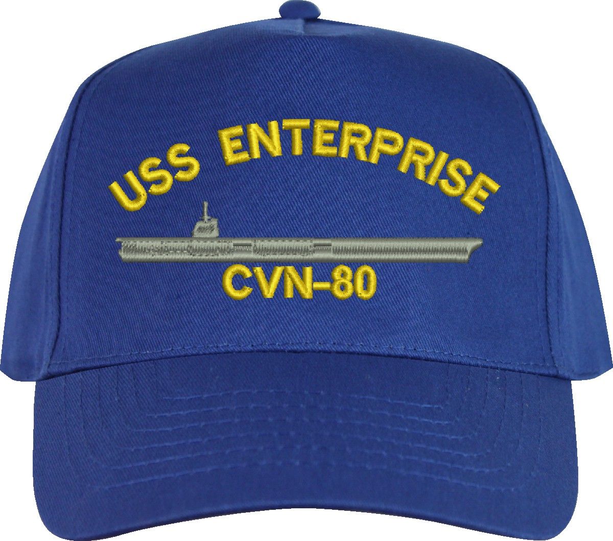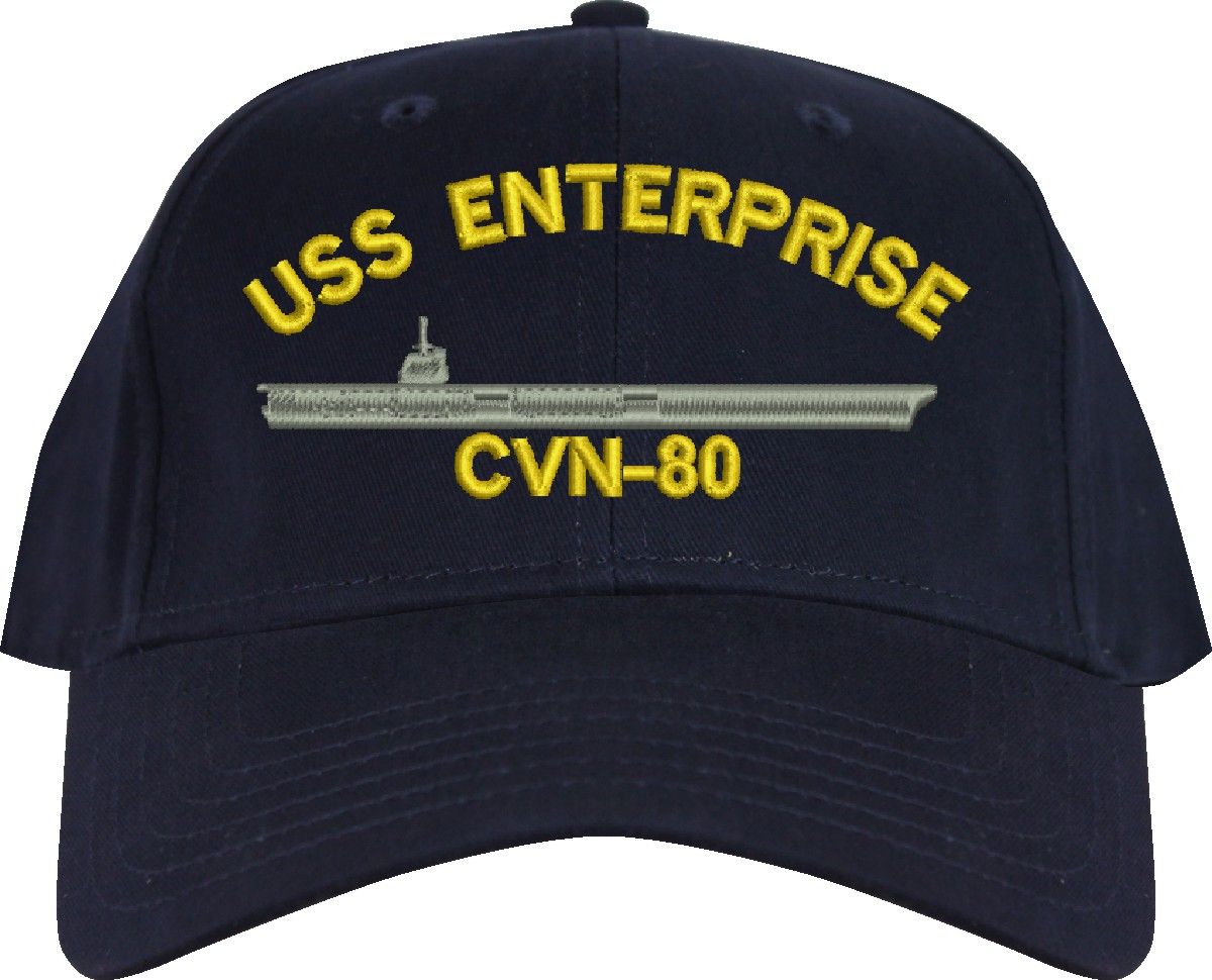 All Text on custom orders will be embroidered in ALL CAPITAL LETTERS.MilitaryBest is proud to offer this USS Enterprise CVN-80 Imported Cap. This Cap honors the service of our U.S. Navy personel who will serve aboard this ship protecting our freedom with pride. Choose from an assortment of colors in High or Low Profile. These are perfect for honoring your USS Enterprise Navy Veteran. For an additional cost you can also have your Custom Text embroidered on the back of the ball cap. All embroidery is performed to order at our facilities in Scottsboro, Alabama by Americans with a passion for patriotism!