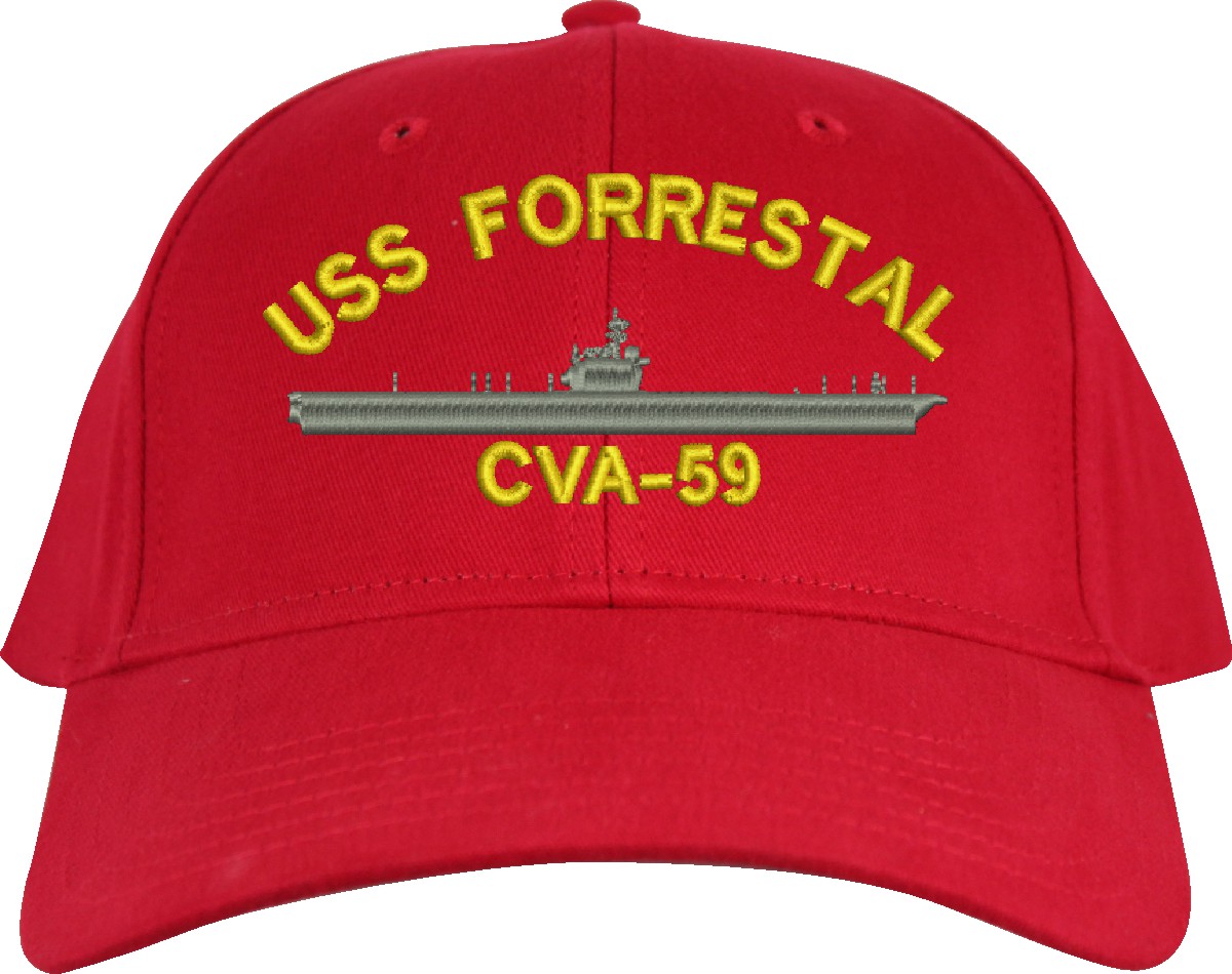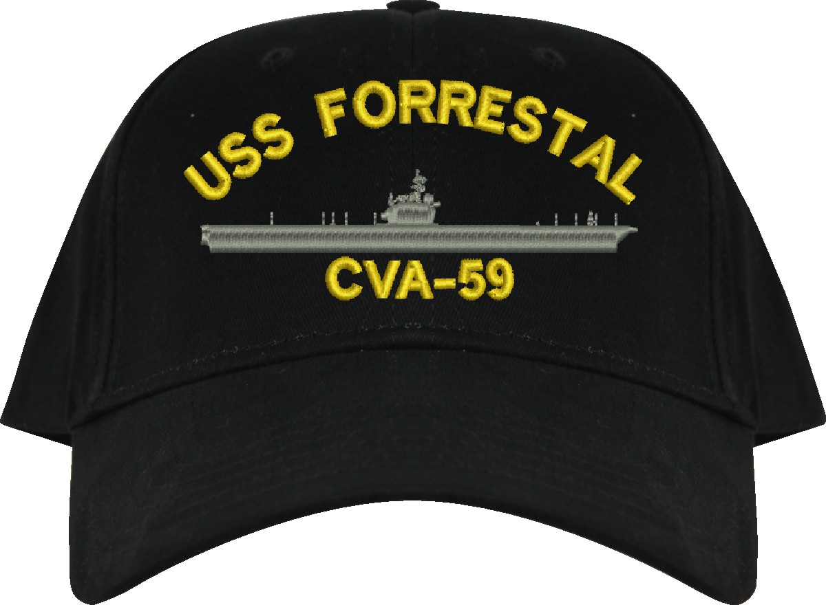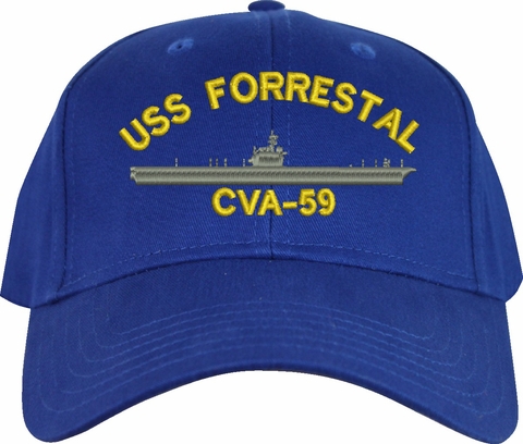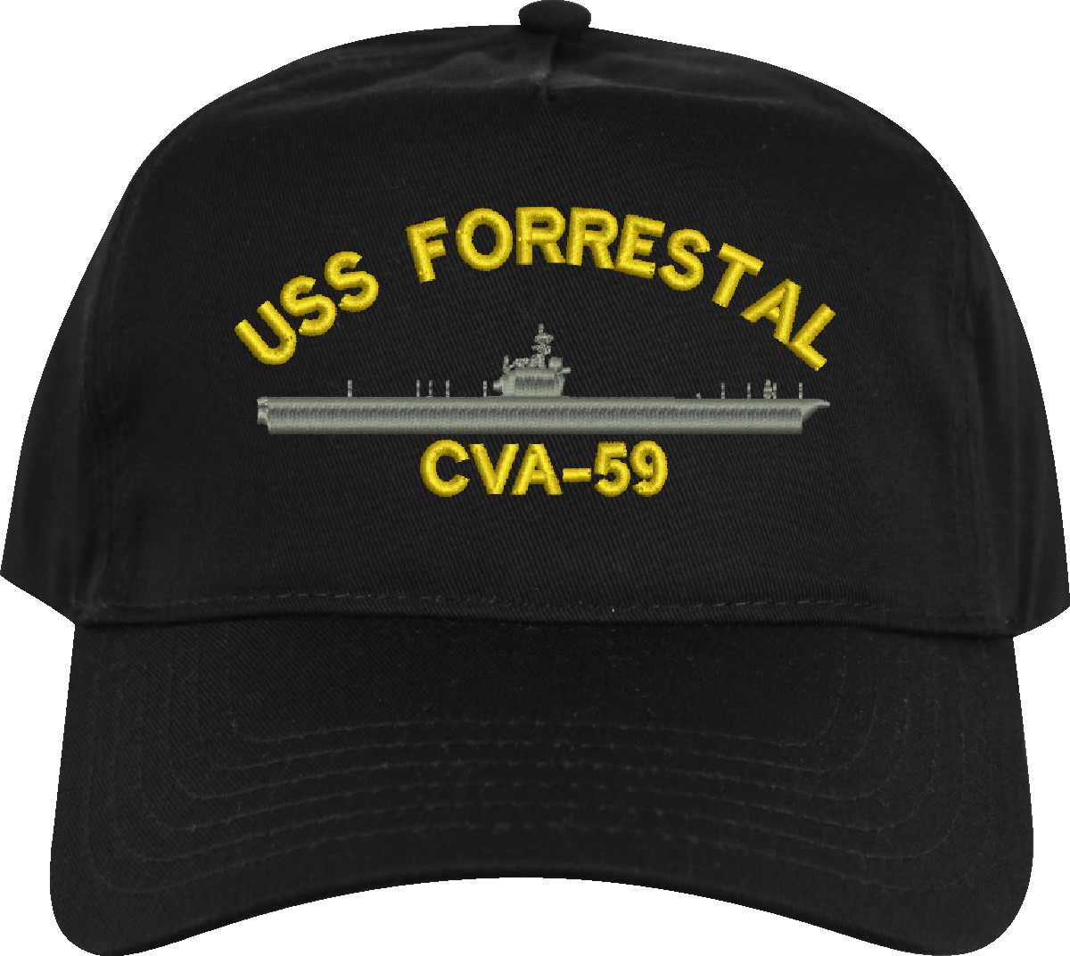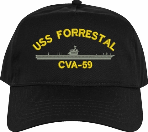 All Text on custom orders will be embroidered in ALL CAPITAL LETTERS.MilitaryBest is proud to offer this USS Forrestal CVA-59 Imported Cap. This Cap honors the service of our U.S. Navy personel who have served aboard this ship protecting our freedom with pride. Choose from an assortment of colors in High or Low Profile. These are perfect for honoring your USS Forrestal Navy Veteran. For an additional cost you can also have your Custom Text embroidered on the back of the ball cap. All embroidery is performed to order at our facilities in Scottsboro, Alabama by Americans with a passion for patriotism!
