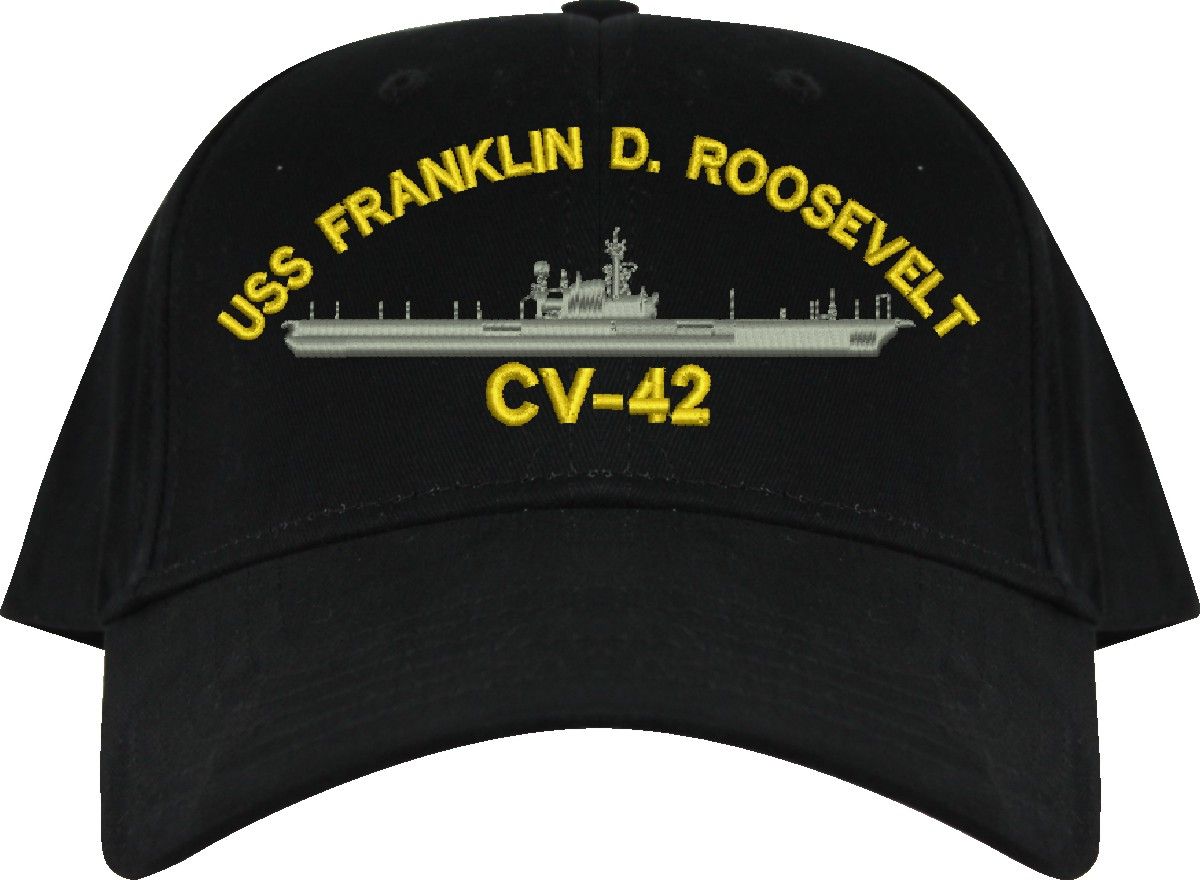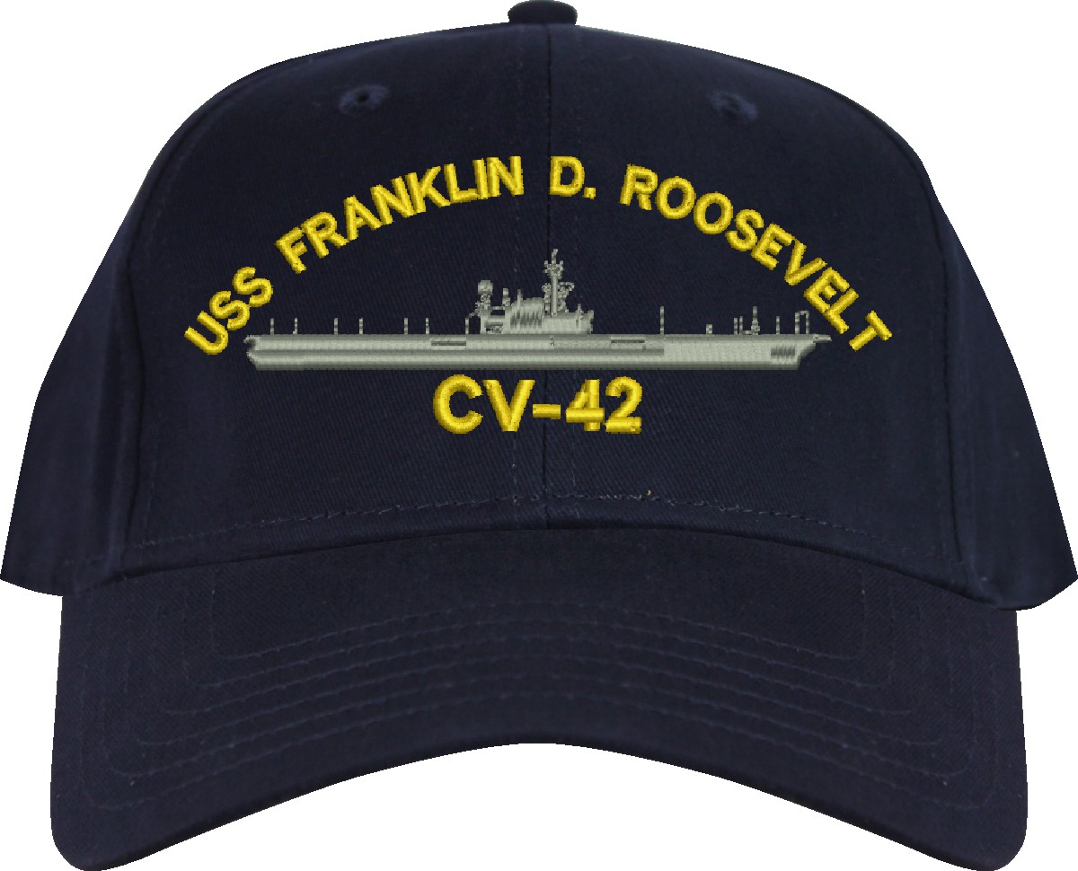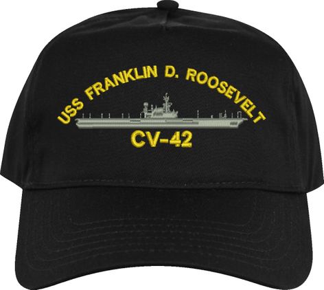 All Text on custom orders will be embroidered in ALL CAPITAL LETTERS.MilitaryBest is proud to offer this USS Franklin D. Roosevelt CV-42 Imported Cap. This Cap honors the service of our U.S. Navy personel who have served aboard this ship protecting our freedom with pride. Choose from an assortment of colors in High or Low Profile. These are perfect for honoring your USS Franklin D. Roosevelt Navy Veteran. For an additional cost you can also have your Custom Text embroidered on the back of the ball cap. All embroidery is performed to order at our facilities in Scottsboro, Alabama by Americans with a passion for patriotism!