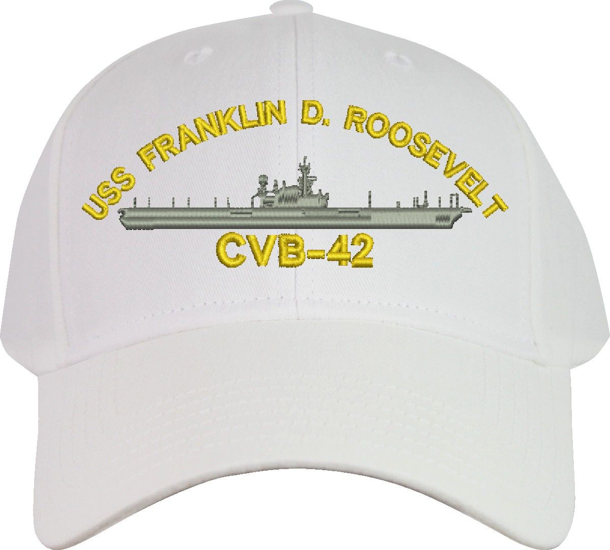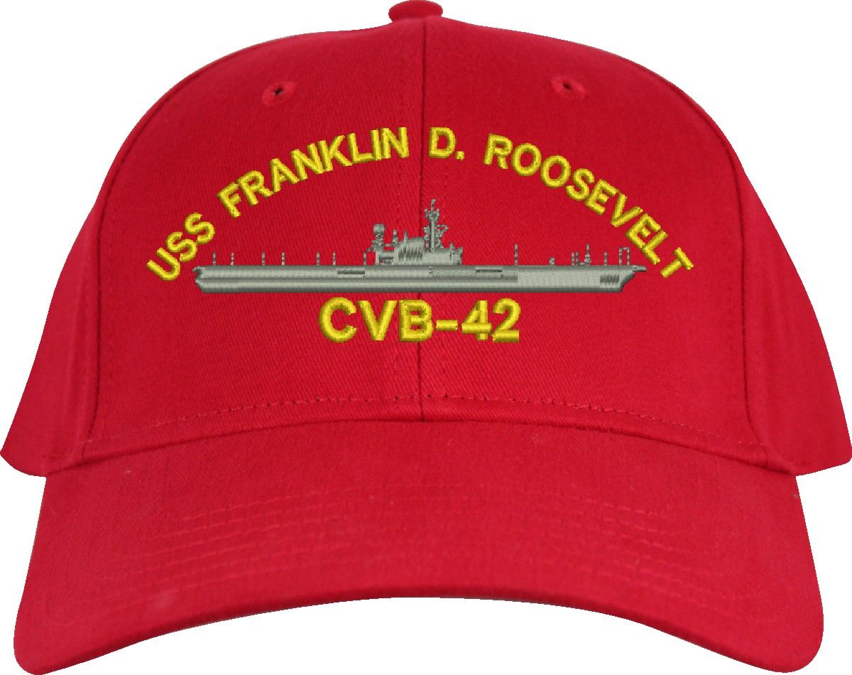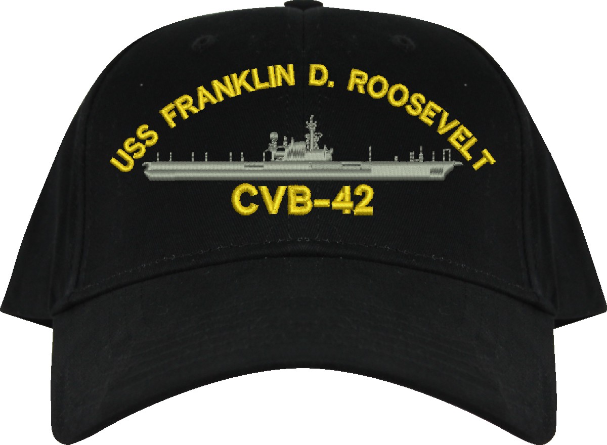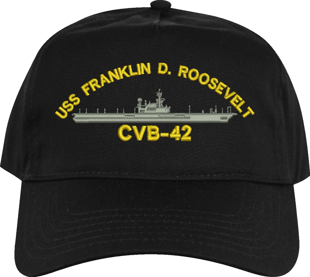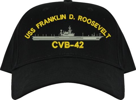All Text on custom orders will be embroidered in ALL CAPITAL LETTERS.MilitaryBest is proud to offer this USS Franklin D. Roosevelt CVB-42 Imported Cap. This Cap honors the service of our U.S. Navy personel who have served aboard this ship protecting our freedom with pride. Choose from an assortment of colors in High or Low Profile. These are perfect for honoring your USS Franklin D. Roosevelt Navy Veteran. For an additional cost you can also have your Custom Text embroidered on the back of the ball cap. All embroidery is performed to order at our facilities in Scottsboro, Alabama by Americans with a passion for patriotism!