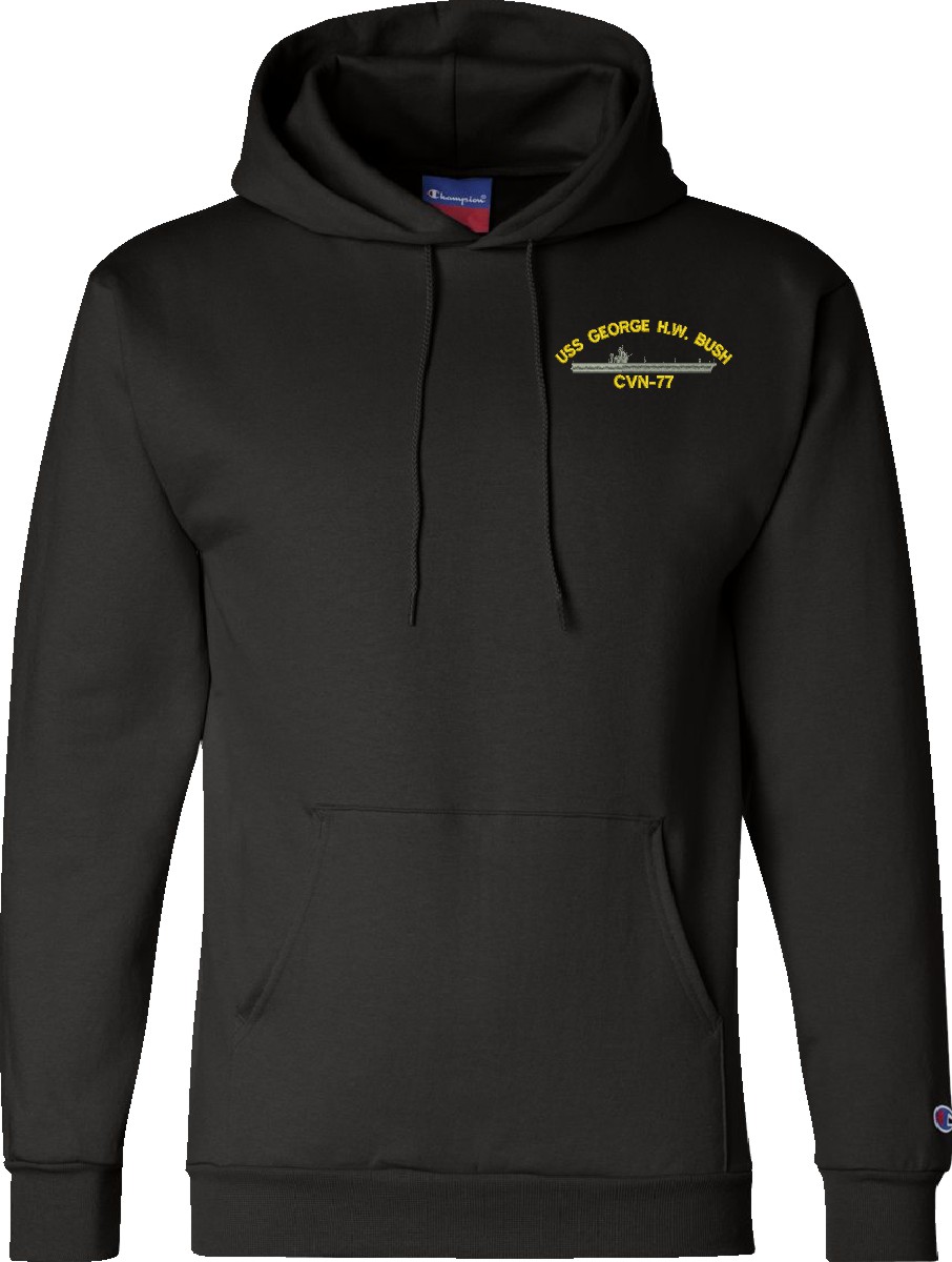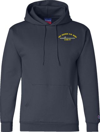 MilitaryBest is proud to offer this USS George H.W. Bush CVN-77 Hooded Sweatshirt. This "Hoodie" honors the service of our U.S. Navy personel who have served aboard this ship protecting our freedom with pride. Choose from an assortment of colors in sizes Small through 3XL. We also offer these hoodies in a zippered version. These are perfect for honoring your USS George H.W. Bush Navy Veteran. For an additional cost you can also have your Rank & Rate embroidered on the left sleeve of the Hoodie. All embroidery is performed to order at our facilities in Scottsboro, Alabama by Americans with a passion for patriotism!