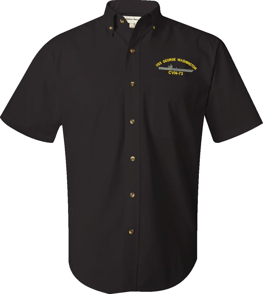 MilitaryBest is proud to offer this USS George Washington CVN-73 Featherlite Button Down Shirt. This Short Sleeve Dress shirt honors the service of our U.S. Navy personel who have served aboard this ship protecting our freedom with pride. Choose from an assortment of colors in sizes Small through 3XL. These are perfect for honoring your USS George Washington Navy Veteran. For an additional cost you can also have your Rank & Rate embroidered on the left sleeve of the shirt. All embroidery is performed to order at our facilities in Scottsboro, Alabama by Americans with a passion for patriotism!