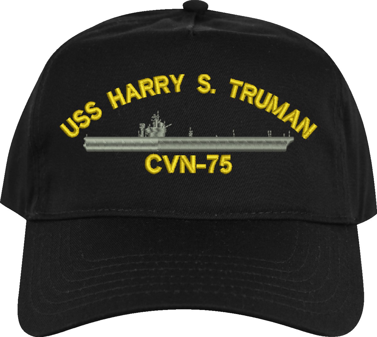 All Text on custom orders will be embroidered in ALL CAPITAL LETTERS.MilitaryBest is proud to offer this USS Harry S. Truman CVN-75 Imported Cap. This Cap honors the service of our U.S. Navy personel who have served aboard this ship protecting our freedom with pride. Choose from an assortment of colors in High or Low Profile. These are perfect for honoring your USS Harry S. Truman Navy Veteran. For an additional cost you can also have your Custom Text embroidered on the back of the ball cap. All embroidery is performed to order at our facilities in Scottsboro, Alabama by Americans with a passion for patriotism!