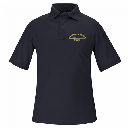 MilitaryBest is proud to offer this USS Harry S. Truman CVN-75 Propper Brand Snag Free Polo Shirt. These polos are Moisture Wicking with a knit so tight that the shirt will not snag. This Polo honors the service of our U.S. Navy personel who have served aboard this ship protecting our freedom with pride. Choose from Black, Navy Blue, and White in Sizes Small - 5XL. These are perfect for honoring your USS Harry S. Truman Navy Veteran. For an additional cost you can also have your Rank & Rate embroidered on the left sleeve of the Polo. All embroidery is performed to order at our facilities in Scottsboro, Alabama by Americans with a passion for patriotism!