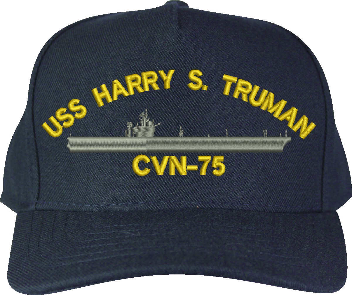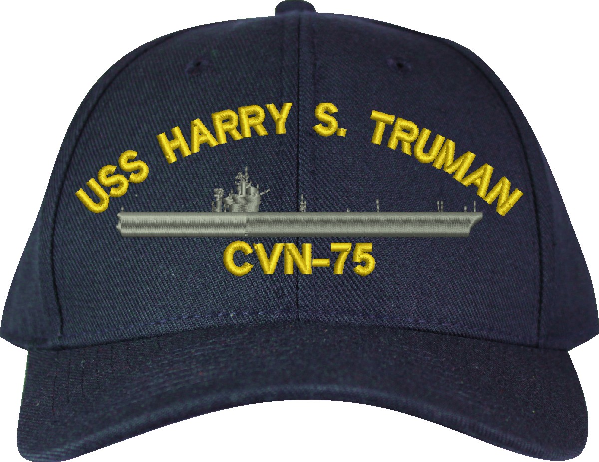 MilitaryBest is proud to offer this USS Harry S. Truman CVN-75 Made in the USA Ball Cap. This Cap honors the service of our U.S. Navy personel who have served aboard this ship protecting our freedom with pride. Choose from Navy Blue or Black in High or Low Profile. These are perfect for honoring your USS Harry S. Truman Navy Veteran. For an additional cost you can also have your Custom Text embroidered on the back of the ball cap. Embroidery on these Made in the USA caps is performed to order at our facilities in Scottsboro, Alabama by Americans with a passion for patriotism!
