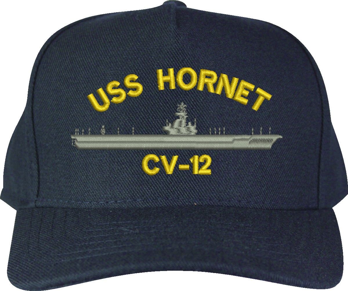 MilitaryBest is proud to offer this USS Hornet CV-12 Made in the USA Ball Cap. This Cap honors the service of our U.S. Navy personel who have served aboard this ship protecting our freedom with pride. Choose from Navy Blue or Black in High or Low Profile. These are perfect for honoring your USS Hornet Navy Veteran. For an additional cost you can also have your Custom Text embroidered on the back of the ball cap. Embroidery on these Made in the USA caps is performed to order at our facilities in Scottsboro, Alabama by Americans with a passion for patriotism!