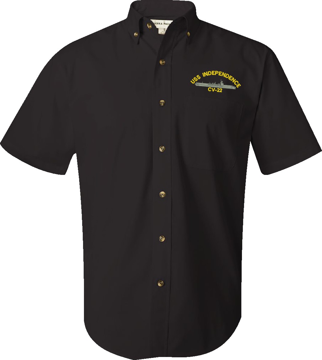 MilitaryBest is proud to offer this USS Independence CV-22 Featherlite Button Down Shirt. This Short Sleeve Dress shirt honors the service of our U.S. Navy personel who have served aboard this ship protecting our freedom with pride. Choose from an assortment of colors in sizes Small through 3XL. These are perfect for honoring your USS Independence Navy Veteran. For an additional cost you can also have your Rank & Rate embroidered on the left sleeve of the shirt. All embroidery is performed to order at our facilities in Scottsboro, Alabama by Americans with a passion for patriotism!