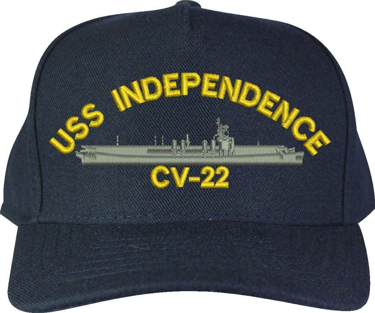 MilitaryBest is proud to offer this USS Independence CV-22 Made in the USA Ball Cap. This Cap honors the service of our U.S. Navy personel who have served aboard this ship protecting our freedom with pride. Choose from Navy Blue or Black in High or Low Profile. These are perfect for honoring your USS Independence Navy Veteran. For an additional cost you can also have your Custom Text embroidered on the back of the ball cap. Embroidery on these Made in the USA caps is performed to order at our facilities in Scottsboro, Alabama by Americans with a passion for patriotism!