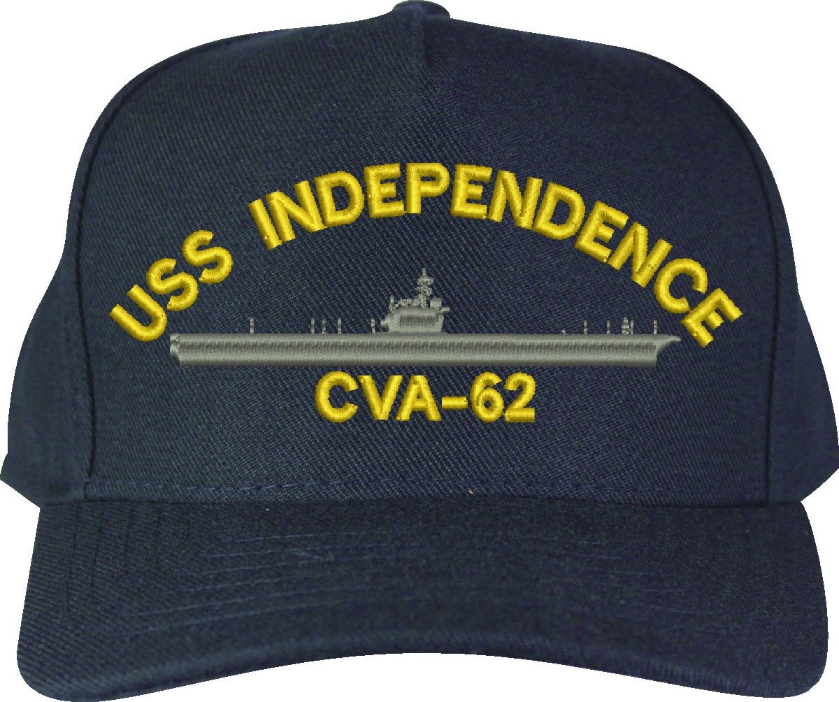 MilitaryBest is proud to offer this USS Independence CVA-62 Made in the USA Ball Cap. This Cap honors the service of our U.S. Navy personel who have served aboard this ship protecting our freedom with pride. Choose from Navy Blue or Black in High or Low Profile. These are perfect for honoring your USS Independence Navy Veteran. For an additional cost you can also have your Custom Text embroidered on the back of the ball cap. Embroidery on these Made in the USA caps is performed to order at our facilities in Scottsboro, Alabama by Americans with a passion for patriotism!