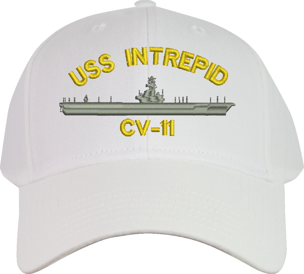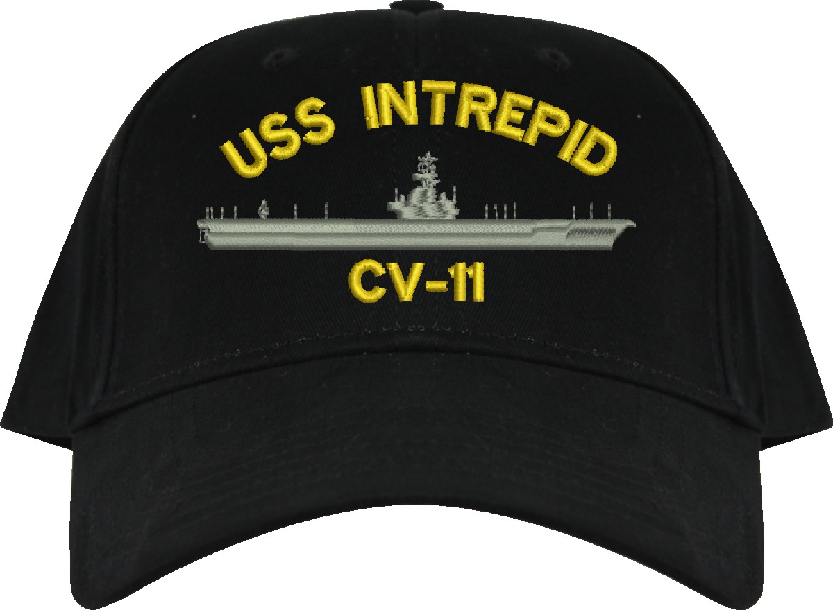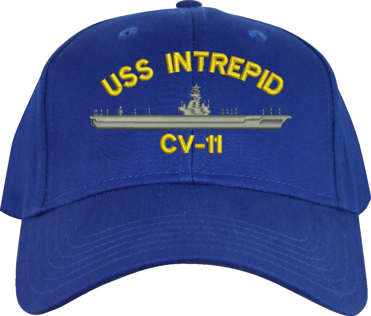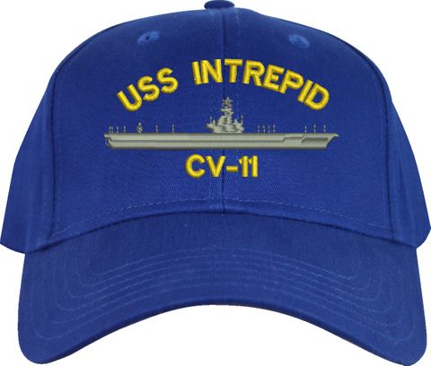 All Text on custom orders will be embroidered in ALL CAPITAL LETTERS.MilitaryBest is proud to offer this USS Intrepid CV-11 Imported Cap. This Cap honors the service of our U.S. Navy personel who have served aboard this ship protecting our freedom with pride. Choose from an assortment of colors in High or Low Profile. These are perfect for honoring your USS Intrepid Navy Veteran. For an additional cost you can also have your Custom Text embroidered on the back of the ball cap. All embroidery is performed to order at our facilities in Scottsboro, Alabama by Americans with a passion for patriotism!