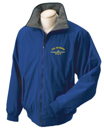 Note: Some of the Color Options pictured may not be available. Available Color Options are listed on the drop down menu above.All Text on custom orders will be embroidered in ALL CAPITAL LETTERS.MilitaryBest is expanding it's line of Men's and Women's apparel with this quality USS Intrepid CVA-11 Jacket. This jacket is made from a 3-Layer system consisting of a nylon shell, an insulator layer, Nylon-lined sleeves, and an inside layer of fleece for comfort. The jacket features include a sturdy black enamel front-zipper, raglan sleeves, outsize zip pockets, an inside zip security pocket, YKK zippers, and a banded-bottom. This jacket will make an excellent addition to your wardrobe, or a quality gift. Your satisfaction is guaranteed! All embroidery is done at our facilities in Scottsboro, AL.
