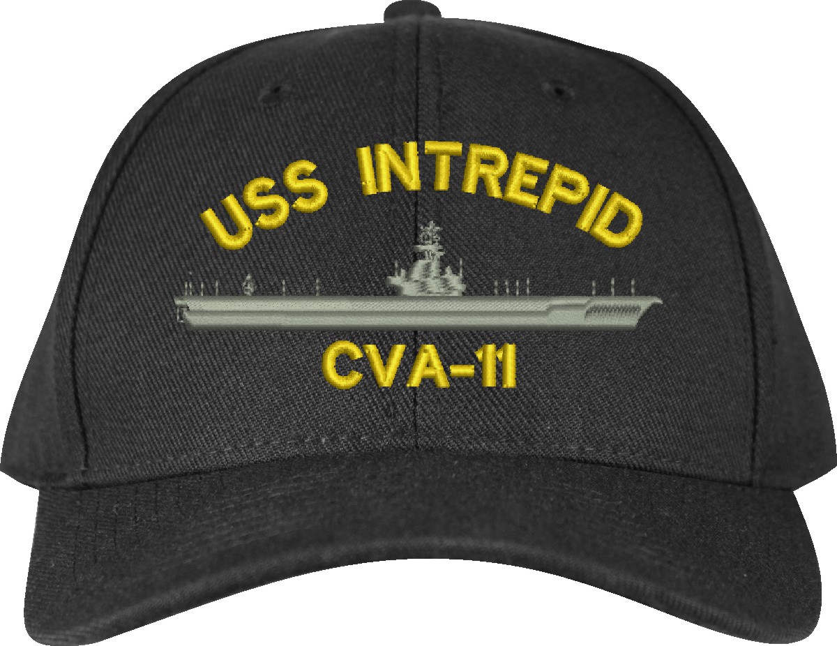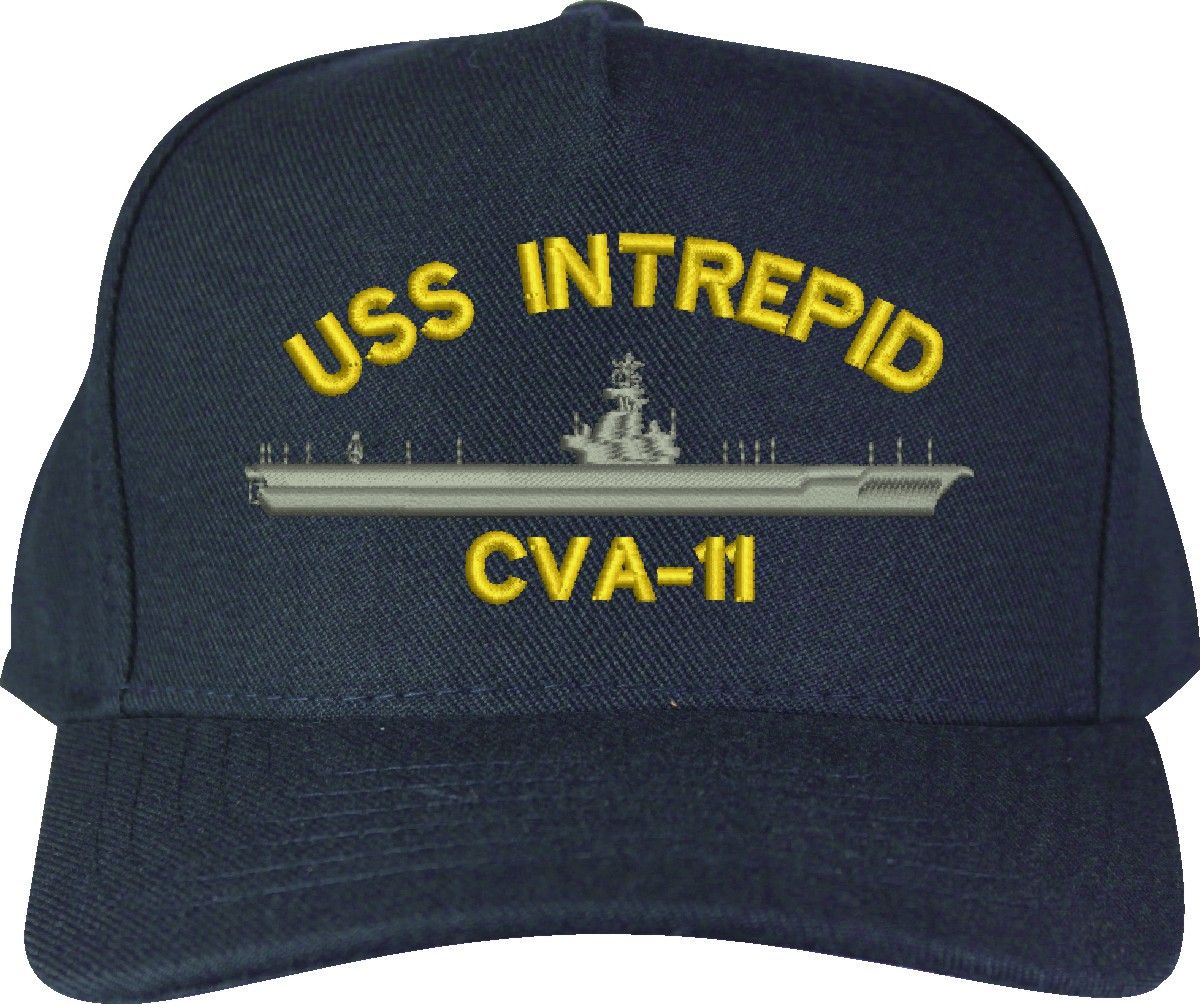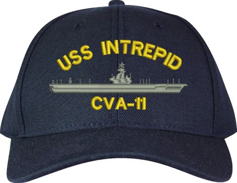 MilitaryBest is proud to offer this USS Intrepid CVA-11 Made in the USA Ball Cap. This Cap honors the service of our U.S. Navy personel who have served aboard this ship protecting our freedom with pride. Choose from Navy Blue or Black in High or Low Profile. These are perfect for honoring your USS Intrepid Navy Veteran. For an additional cost you can also have your Custom Text embroidered on the back of the ball cap. Embroidery on these Made in the USA caps is performed to order at our facilities in Scottsboro, Alabama by Americans with a passion for patriotism!