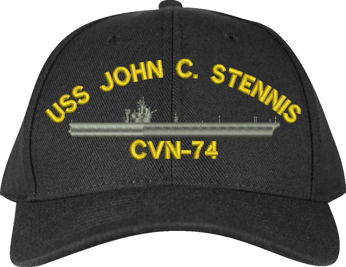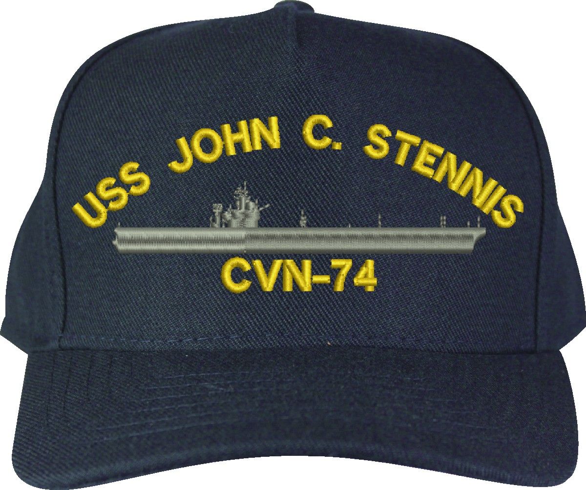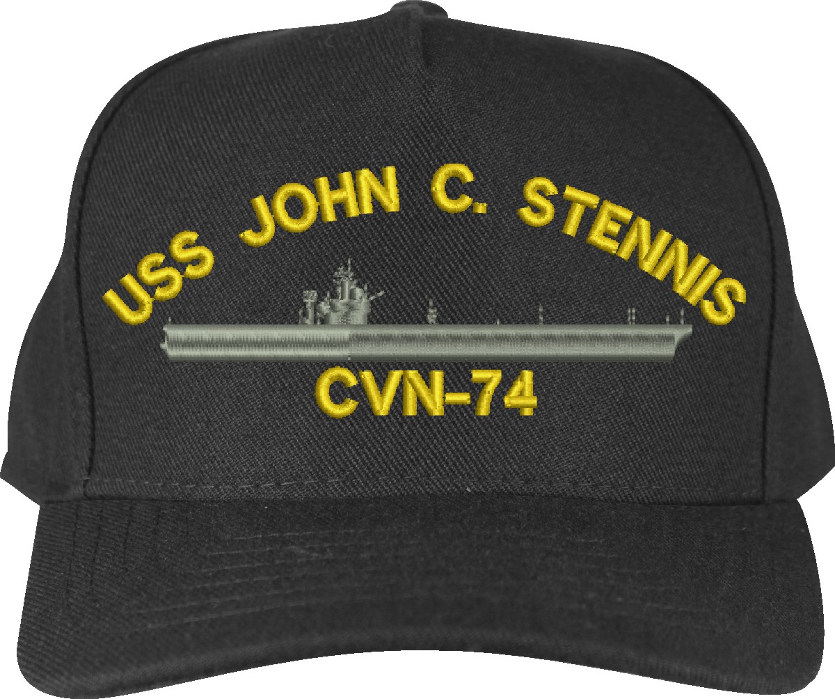 MilitaryBest is proud to offer this USS John C. Stennis CVN-74 Made in the USA Ball Cap. This Cap honors the service of our U.C. Navy personel who have served aboard this ship protecting our freedom with pride. Choose from Navy Blue or Black in High or Low Profile. These are perfect for honoring your USS John C. Stennis Navy Veteran. For an additional cost you can also have your Custom Text embroidered on the back of the ball cap. Embroidery on these Made in the USA caps is performed to order at our facilities in Scottsboro, Alabama by Americans with a passion for patriotism!
