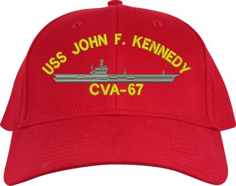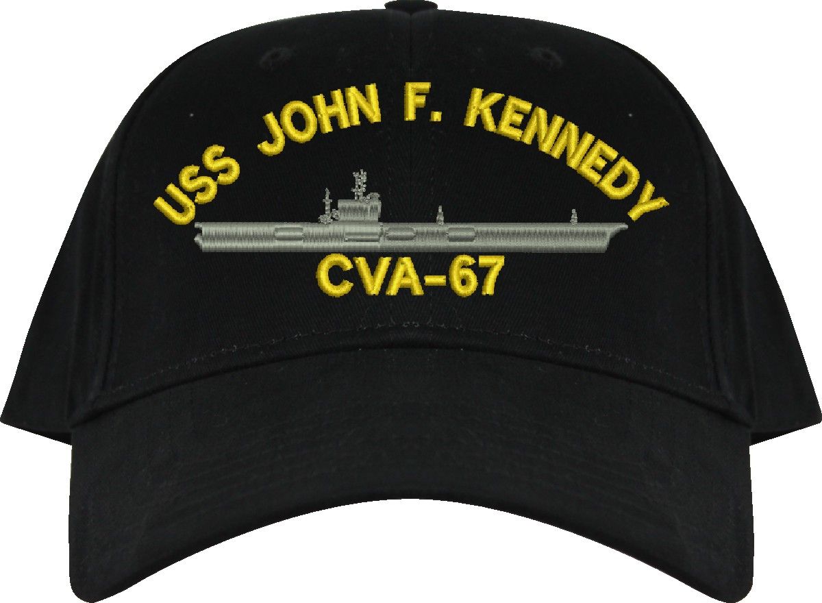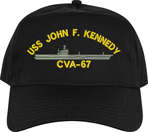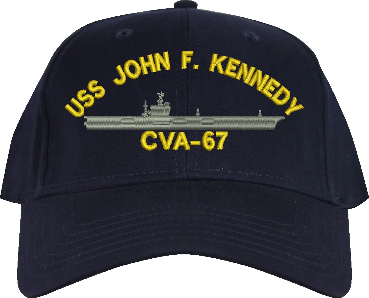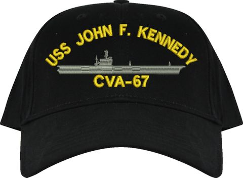 All Text on custom orders will be embroidered in ALL CAPITAL LETTERS.MilitaryBest is proud to offer this USS John F. Kennedy CVA-67 Imported Cap. This Cap honors the service of our U.S. Navy personel who have served aboard this ship protecting our freedom with pride. Choose from an assortment of colors in High or Low Profile. These are perfect for honoring your USS John F. Kennedy Navy Veteran. For an additional cost you can also have your Custom Text embroidered on the back of the ball cap. All embroidery is performed to order at our facilities in Scottsboro, Alabama by Americans with a passion for patriotism!