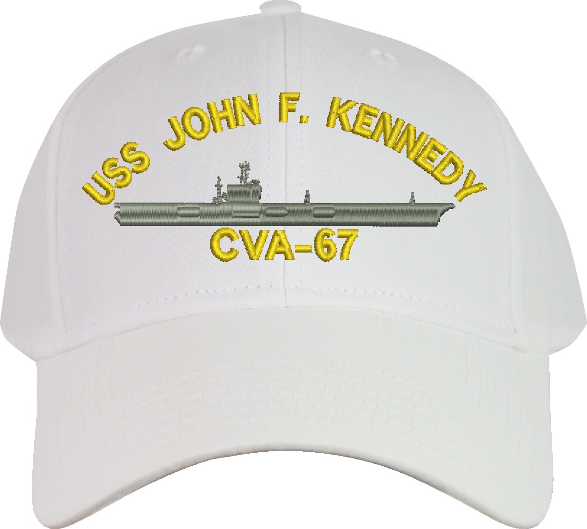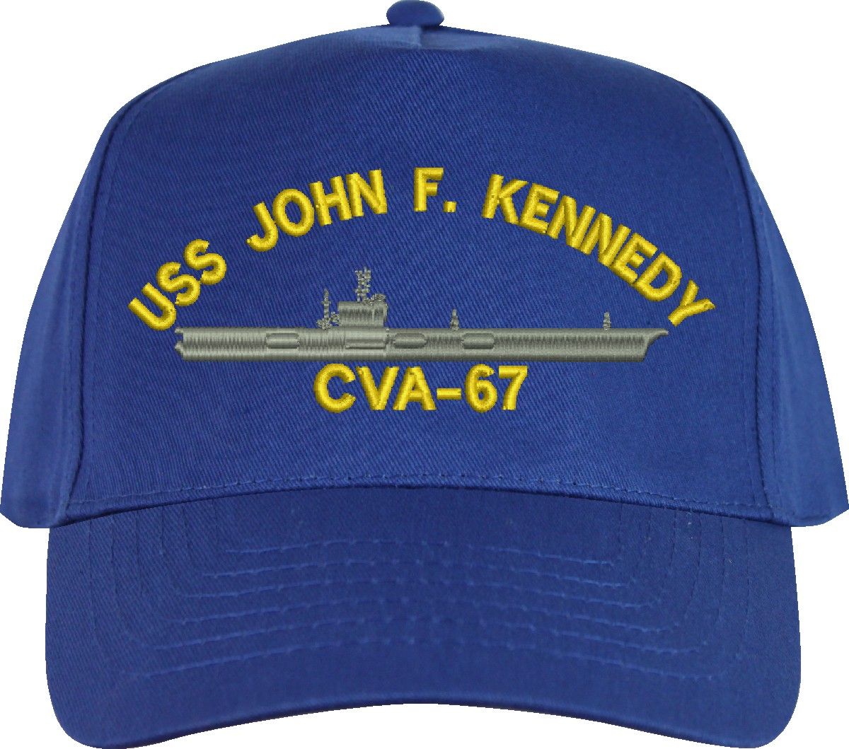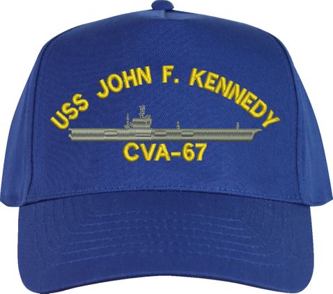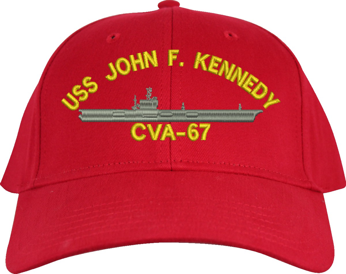 All Text on custom orders will be embroidered in ALL CAPITAL LETTERS.MilitaryBest is proud to offer this USS John F. Kennedy CVA-67 Imported Cap. This Cap honors the service of our U.S. Navy personel who have served aboard this ship protecting our freedom with pride. Choose from an assortment of colors in High or Low Profile. These are perfect for honoring your USS John F. Kennedy Navy Veteran. For an additional cost you can also have your Custom Text embroidered on the back of the ball cap. All embroidery is performed to order at our facilities in Scottsboro, Alabama by Americans with a passion for patriotism!